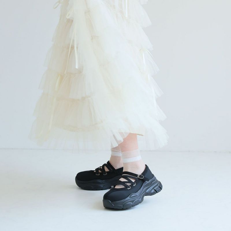 ・ストリート寄りの厚底バレエコアデザインでスタイルアップも叶う。