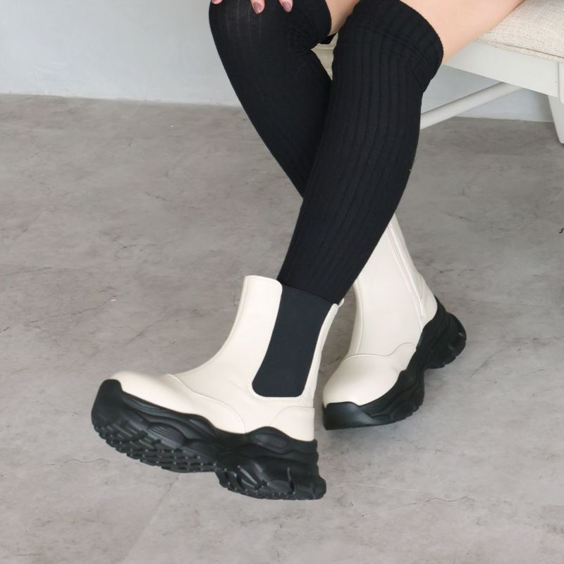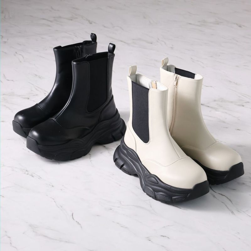 ・定番のサイドゴアブーツも厚底のスニーカーソールでハンサムライクな主役級アイテムに。