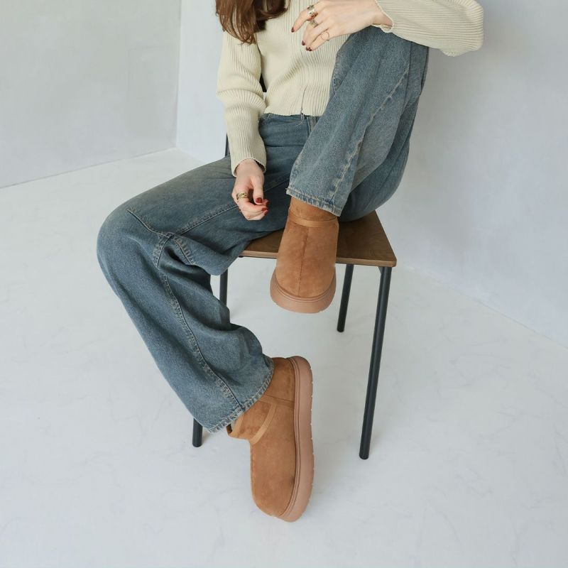 ・冬の定番!あったかムートンブーツも厚底で今っぽいシルエット!