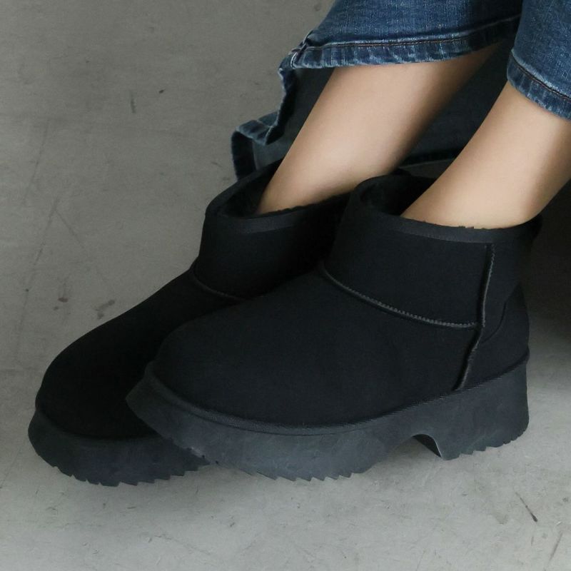 ・冬の定番!あったかムートンブーツも厚底チャンキーヒールで今っぽシルエット!