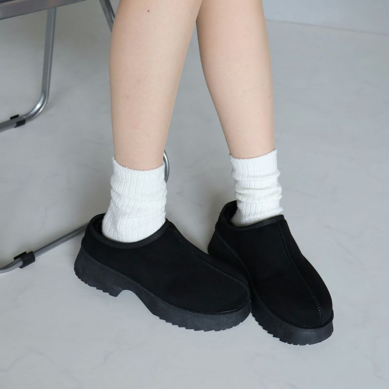 ・厚底チャンキーヒールで今っぽシルエットのムートンスリッパ!