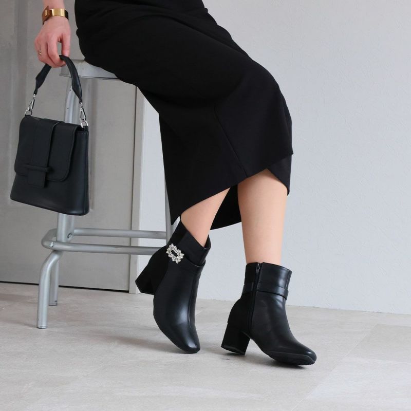 ・キラキラのビジューバックルと異素材コンビで大人っぽさ漂うショートブーツに