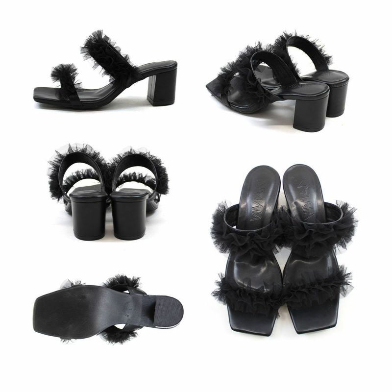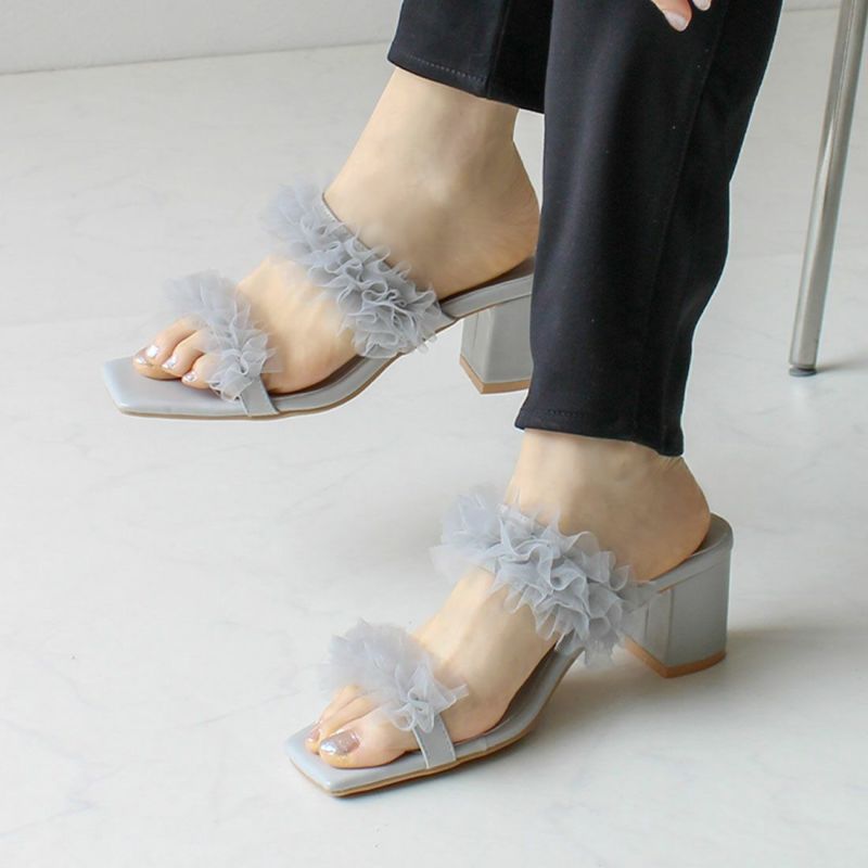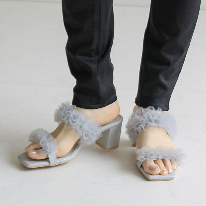 ・定番のミュールデザインも華やかなフリルチュールで大人の抜け感漂う足元に!