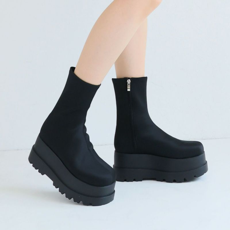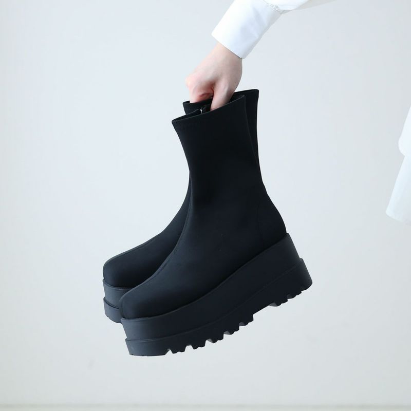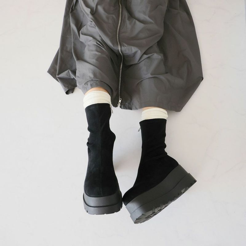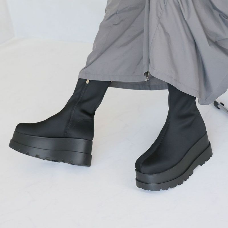 ・脚長に見える厚底ウェッジでスタイルアップが叶うストレッチブーツ!