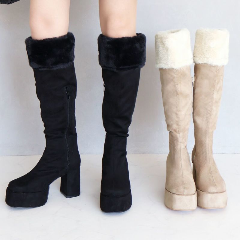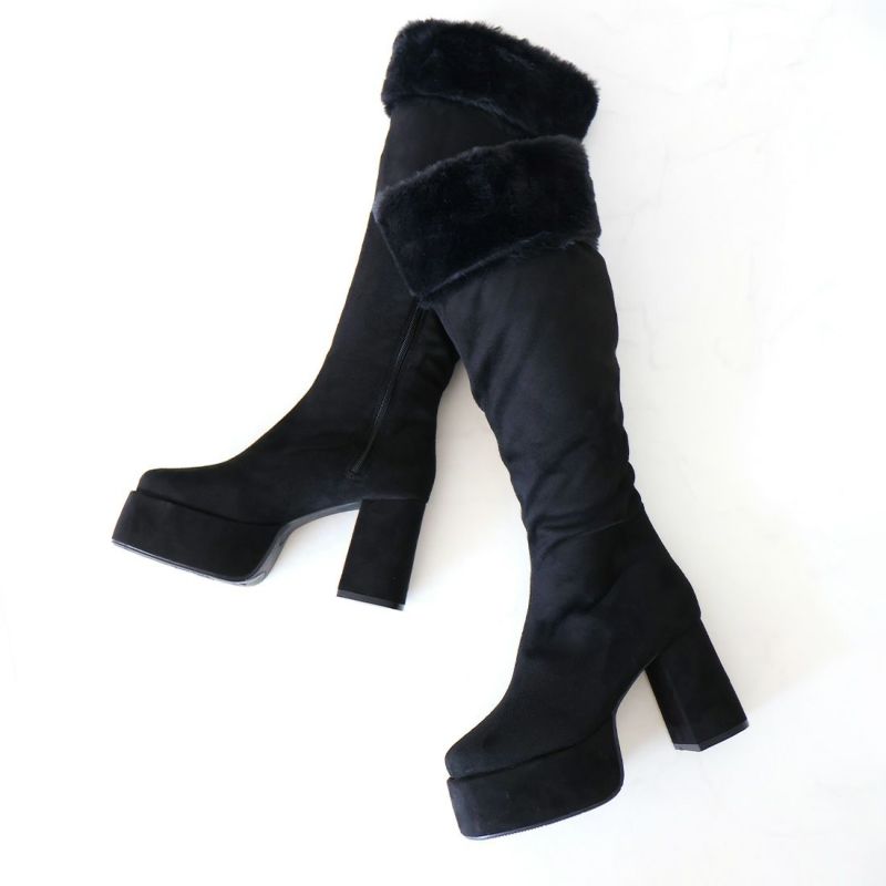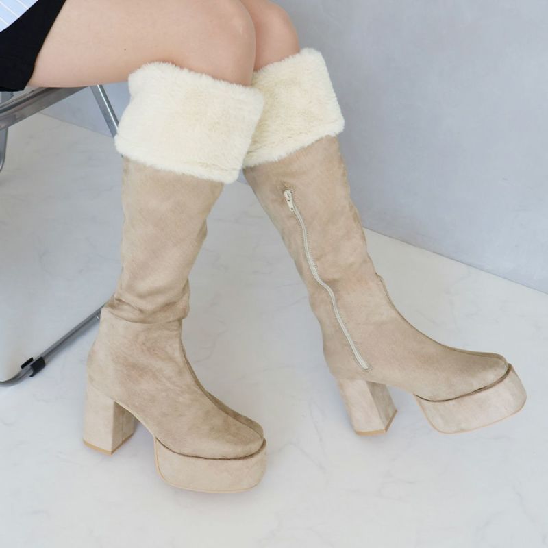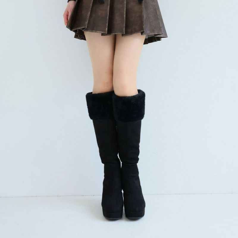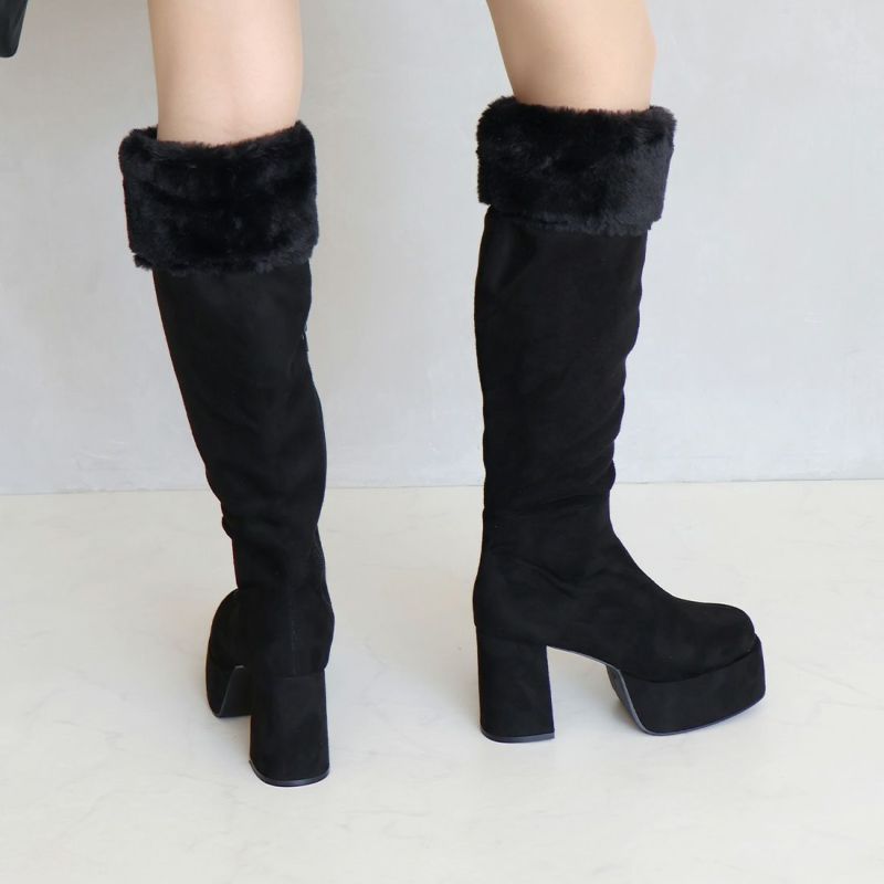 ・ポリュームのあるふわもこファーが大人カワイイ厚底ロングブーツ!