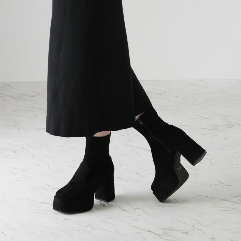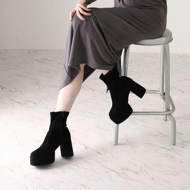・厚底プラットフォームデザインで足元も盛れるショートブーツ!