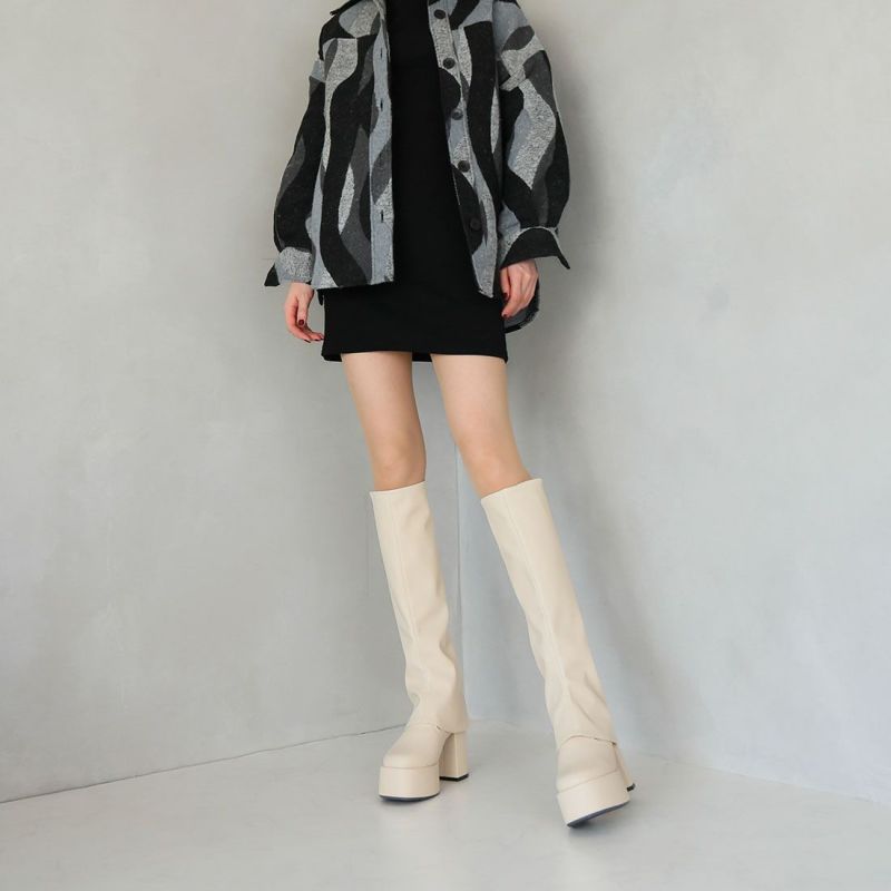 ・厚底プラットフォームデザインで足元も盛れるショートブーツ!