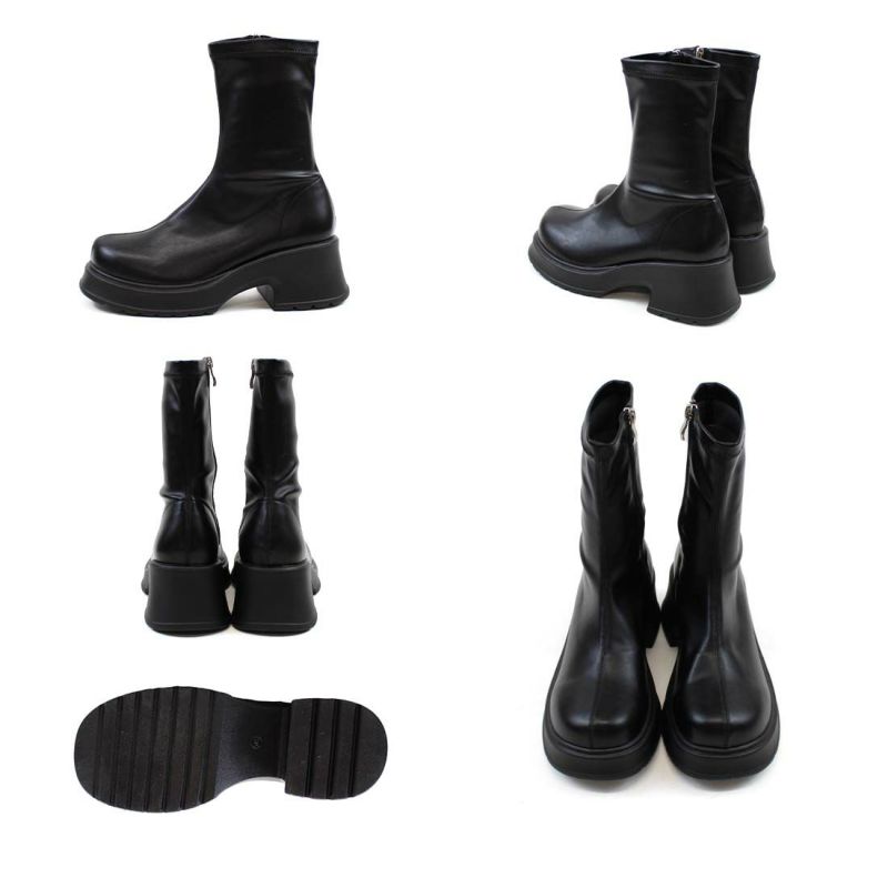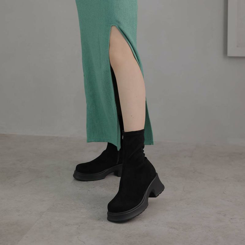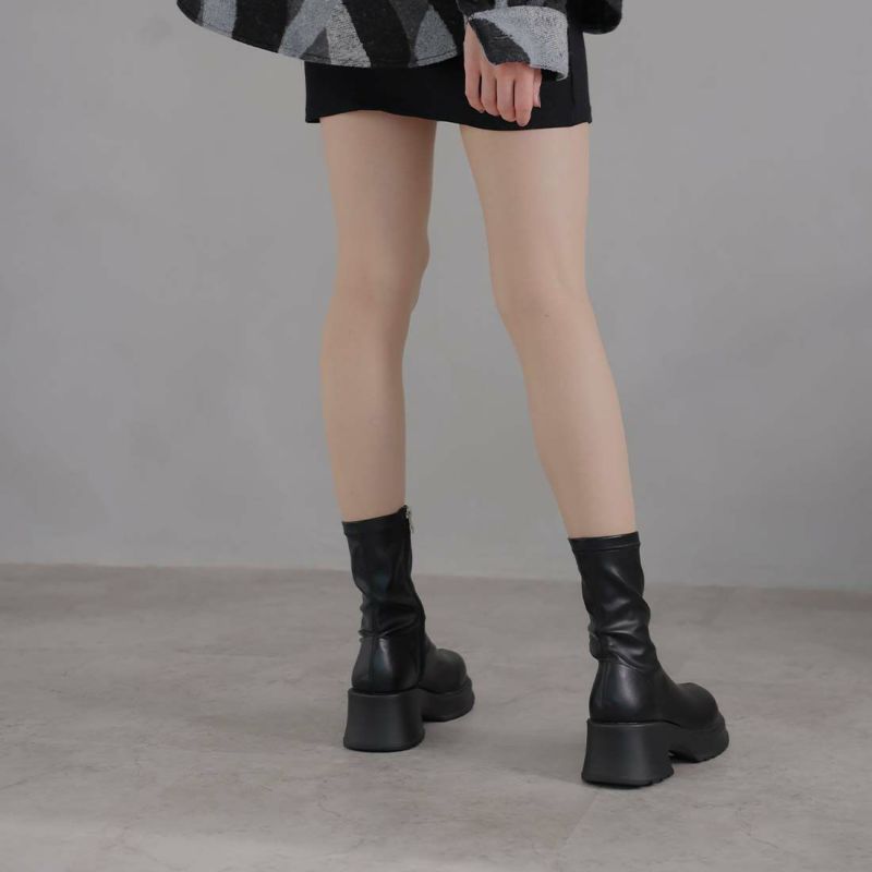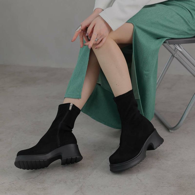 ・コロンとした丸みのあるトゥで個性が際立つ厚底ストレッチブーツ!
