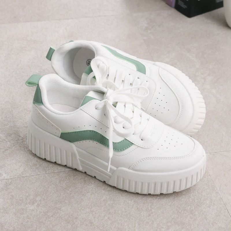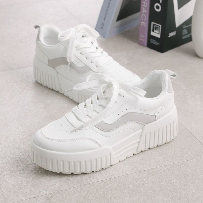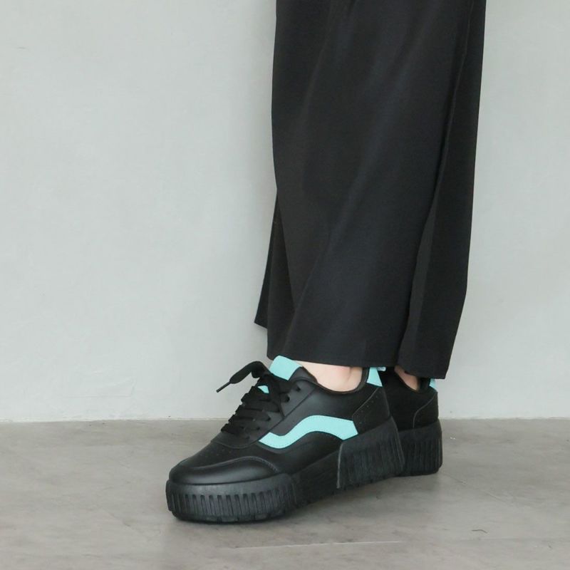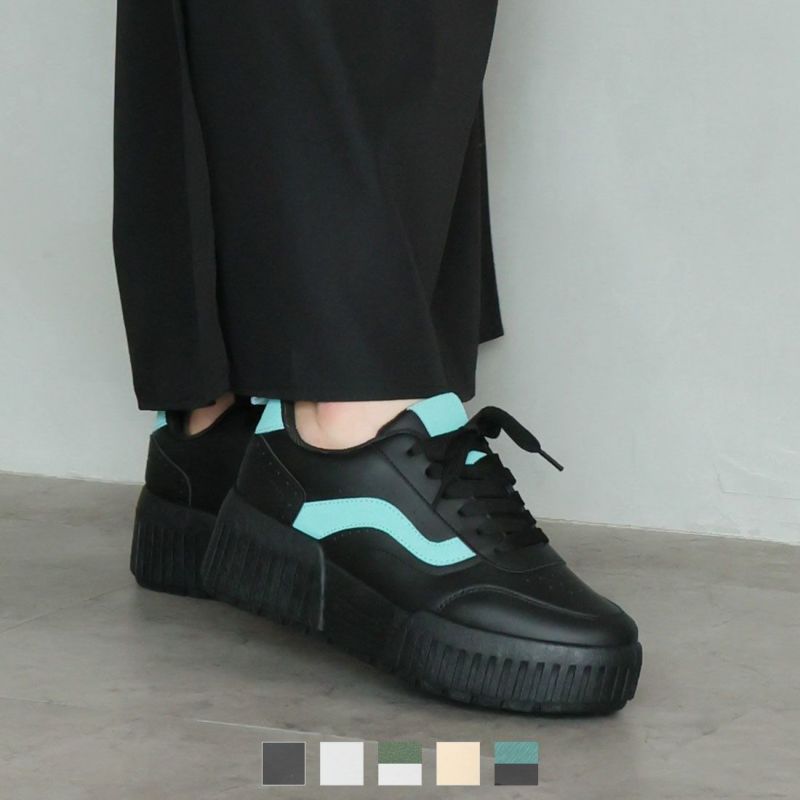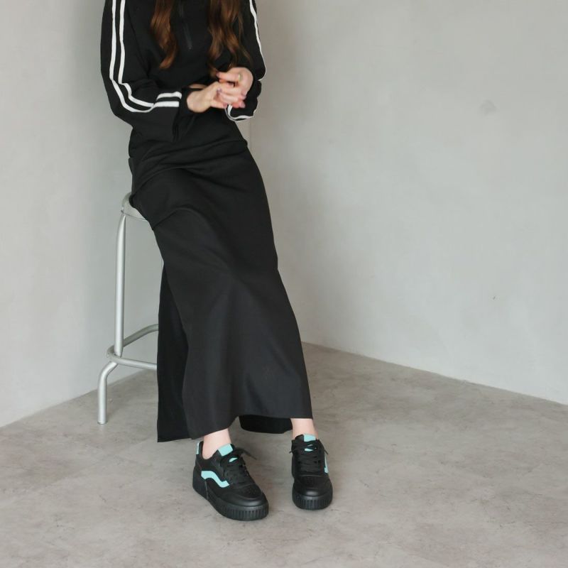 ・定番のレースアップデザインもコンビカラーで旬の足元に!