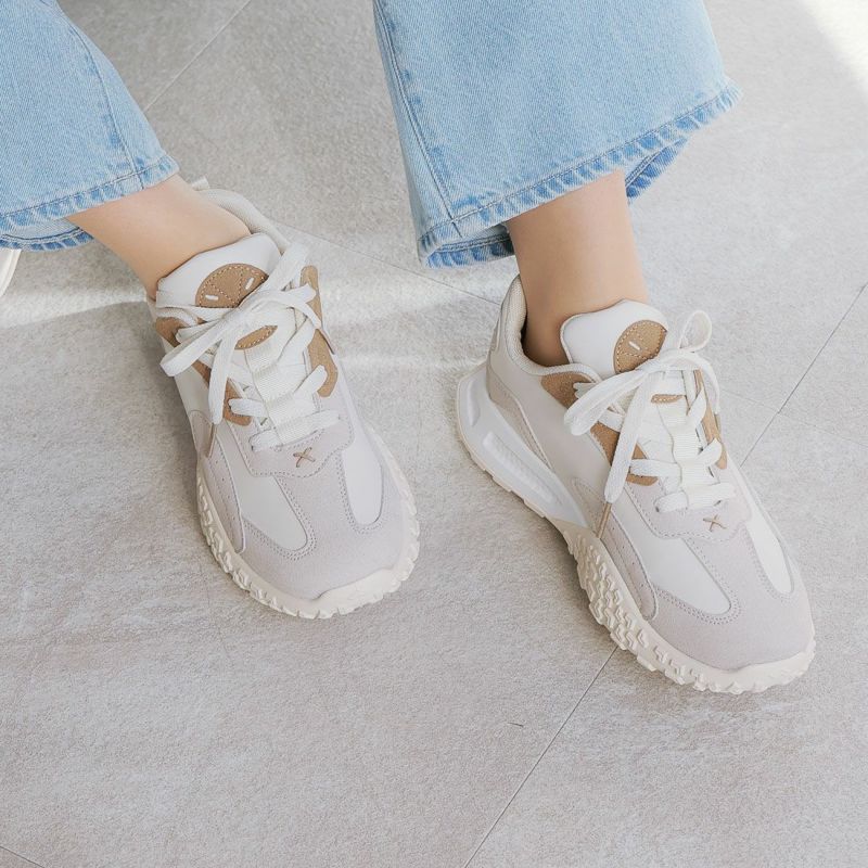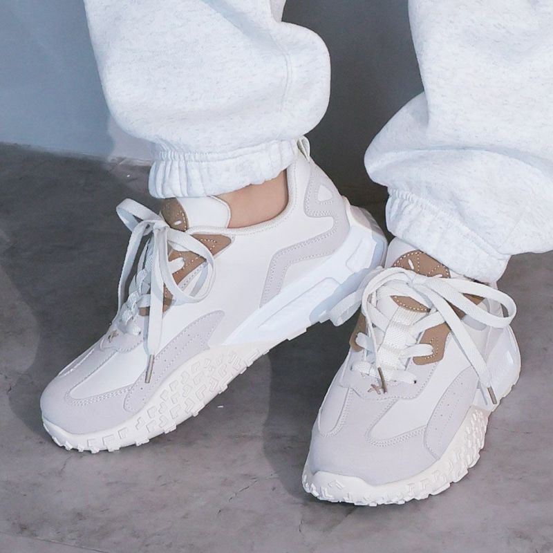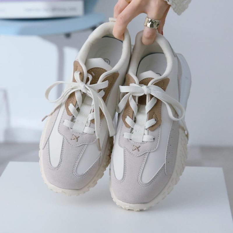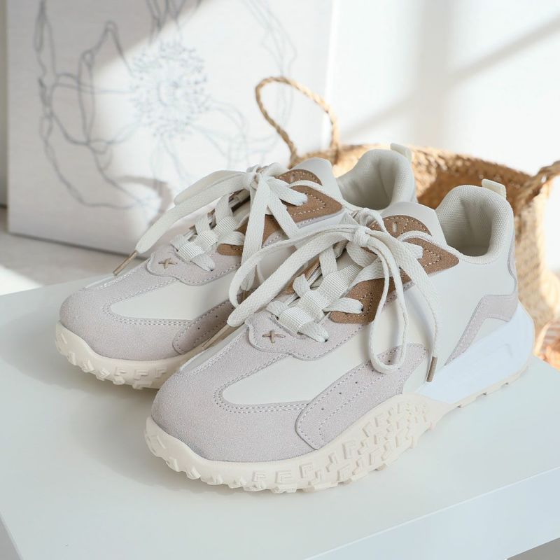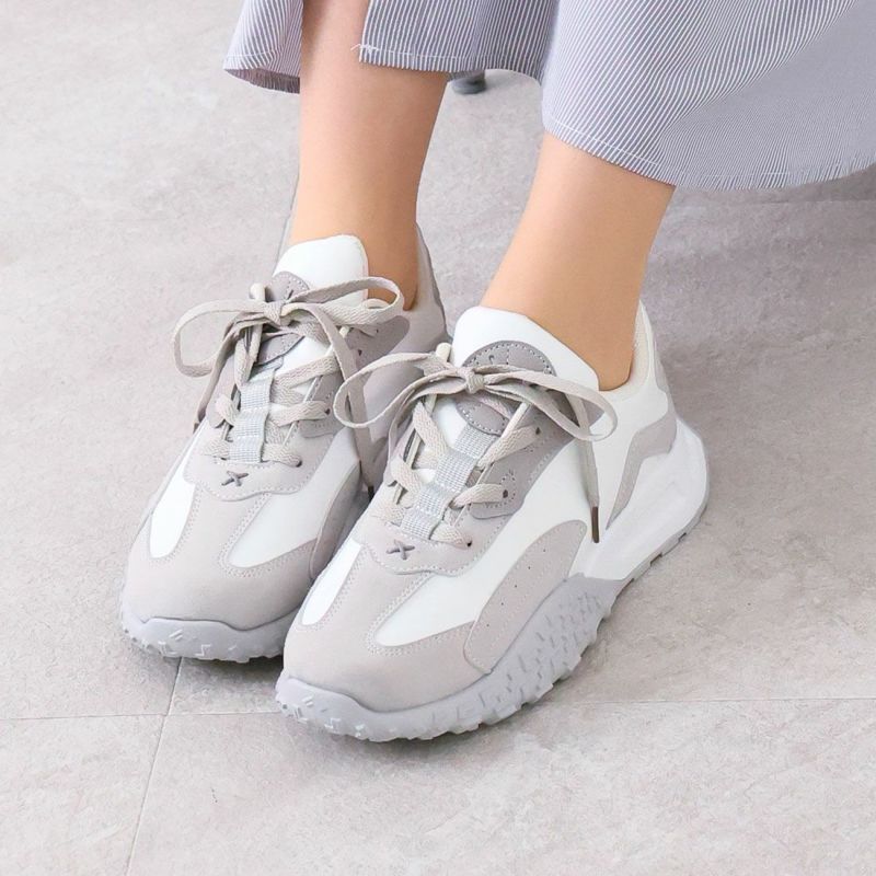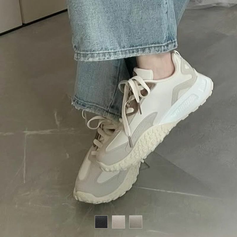・異素材コンビカラーのTトゥデザインレースアップスニーカー!