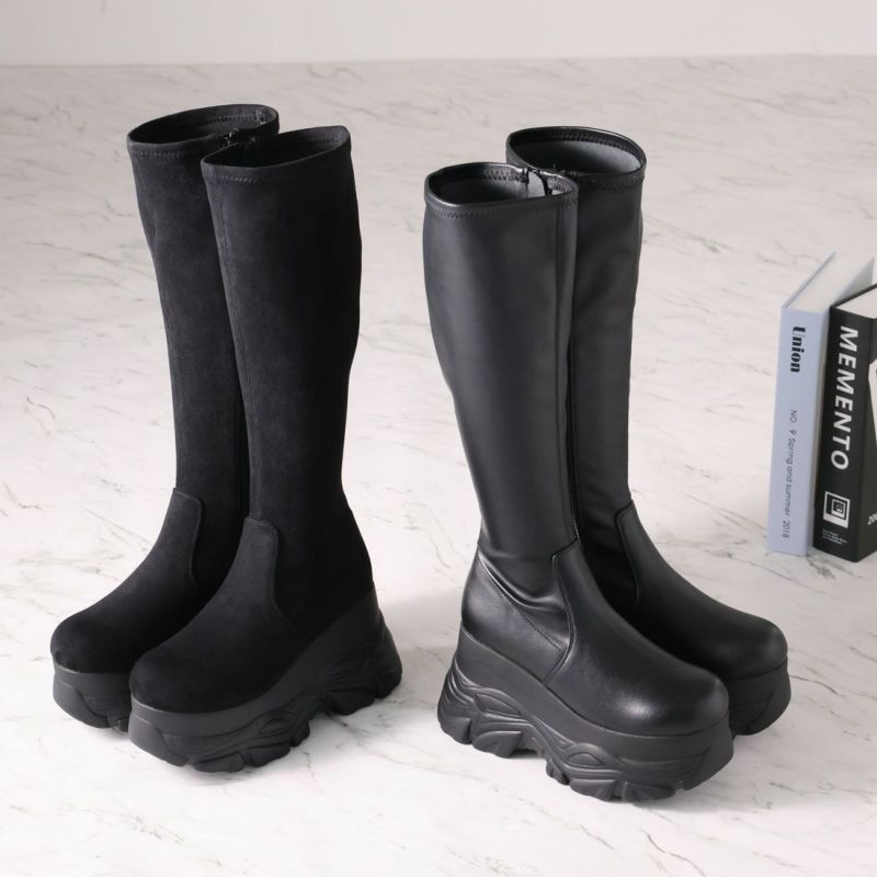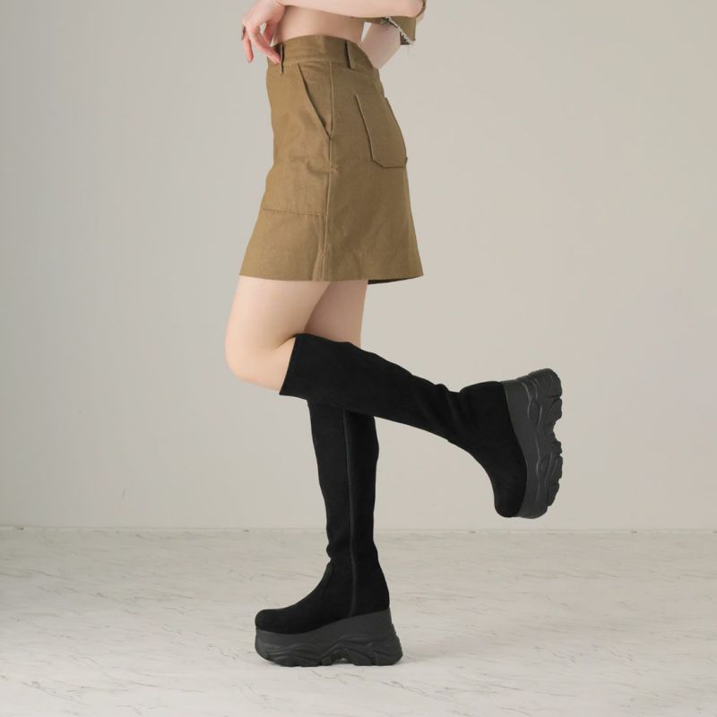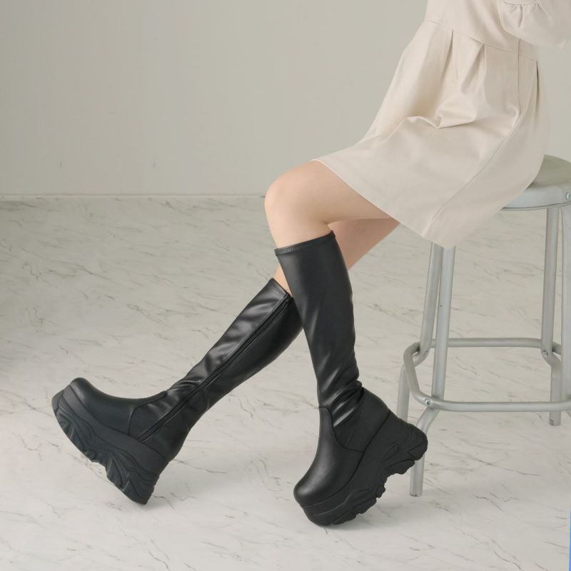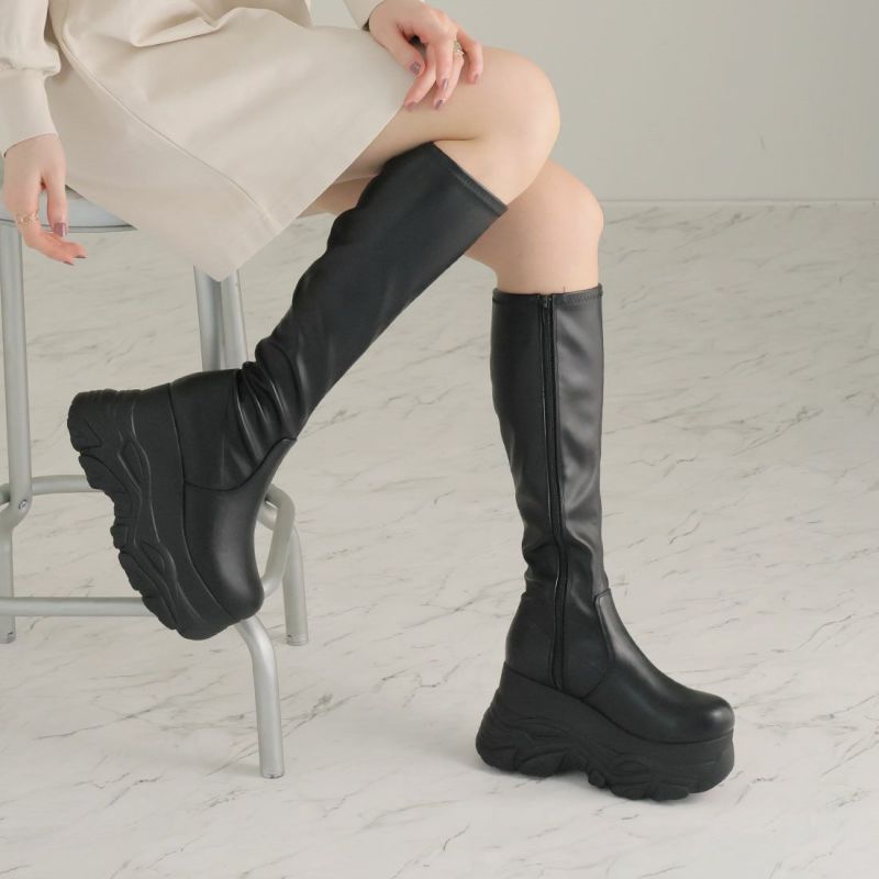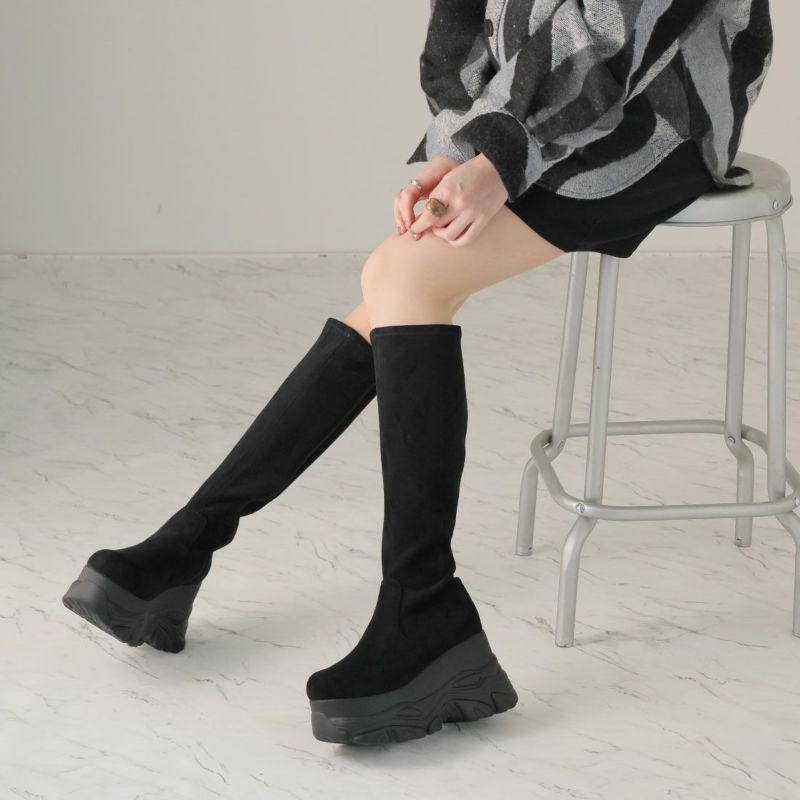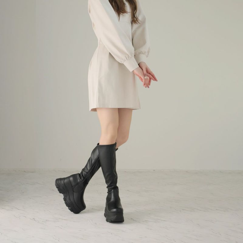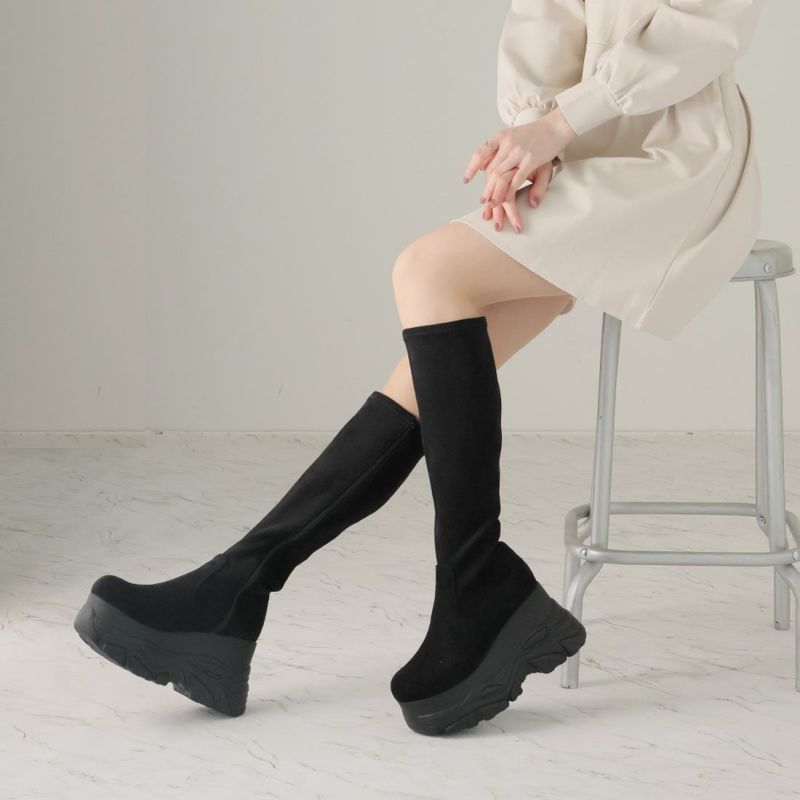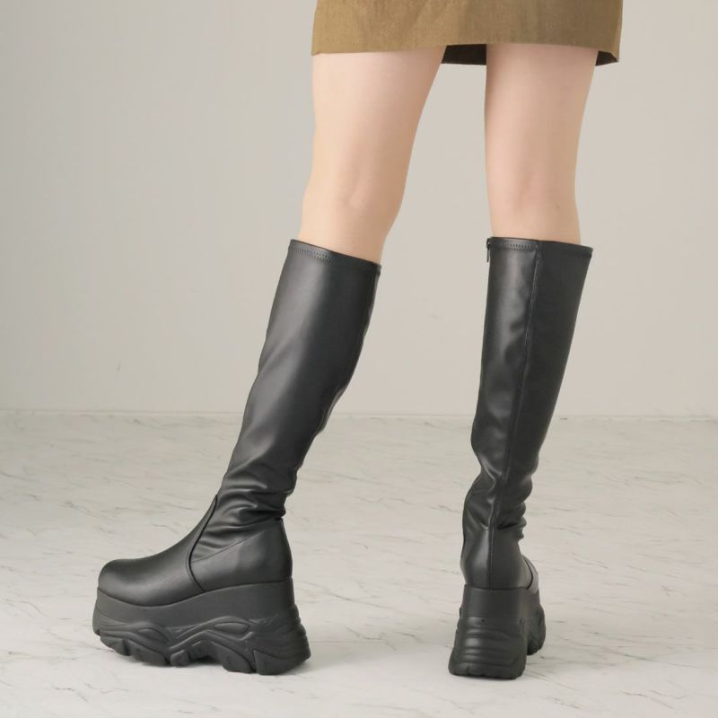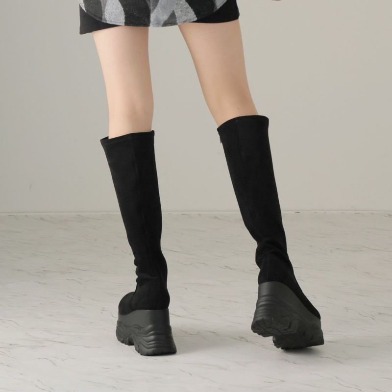 ・定番のストレッチブーツも厚底のスニーカーソールでハンサムライクな主役級アイテムに。
