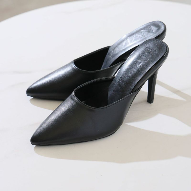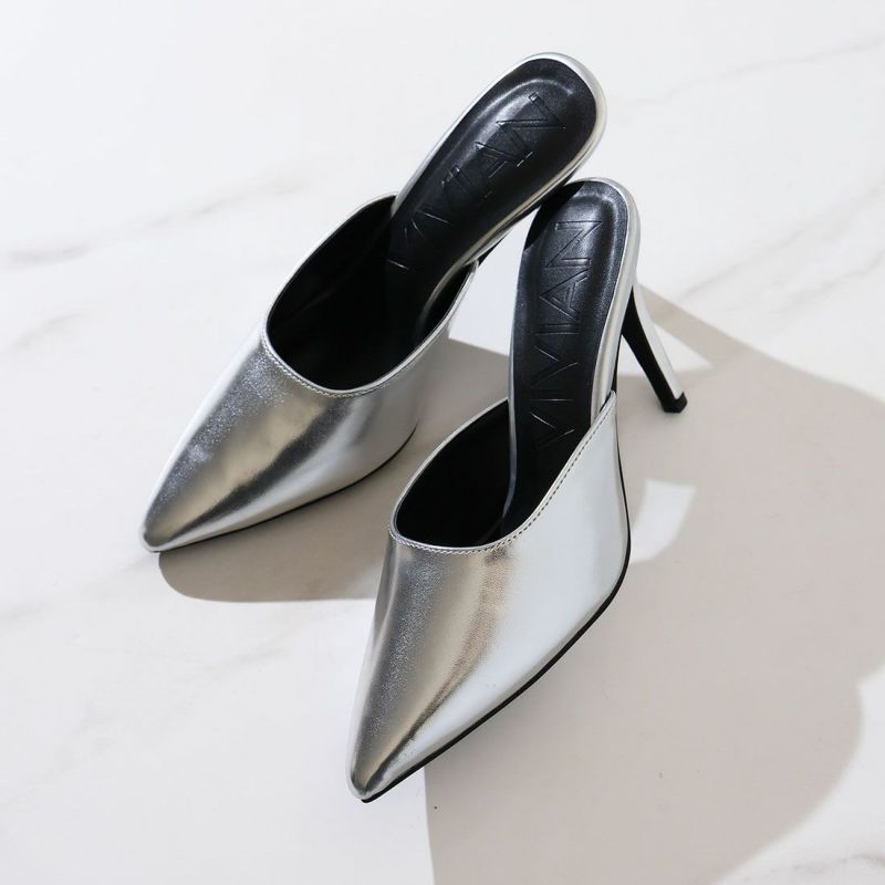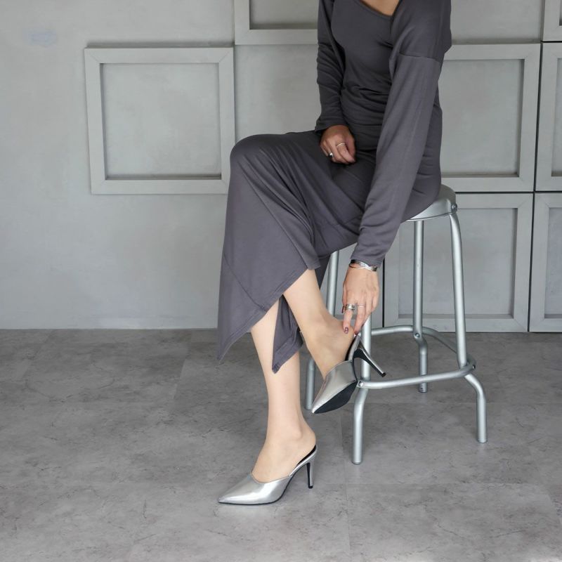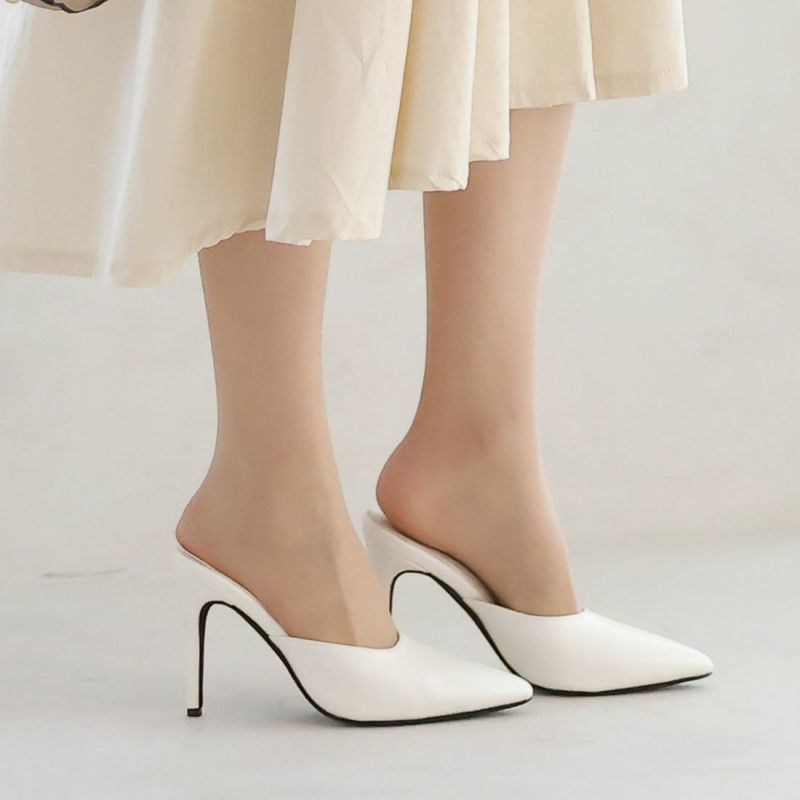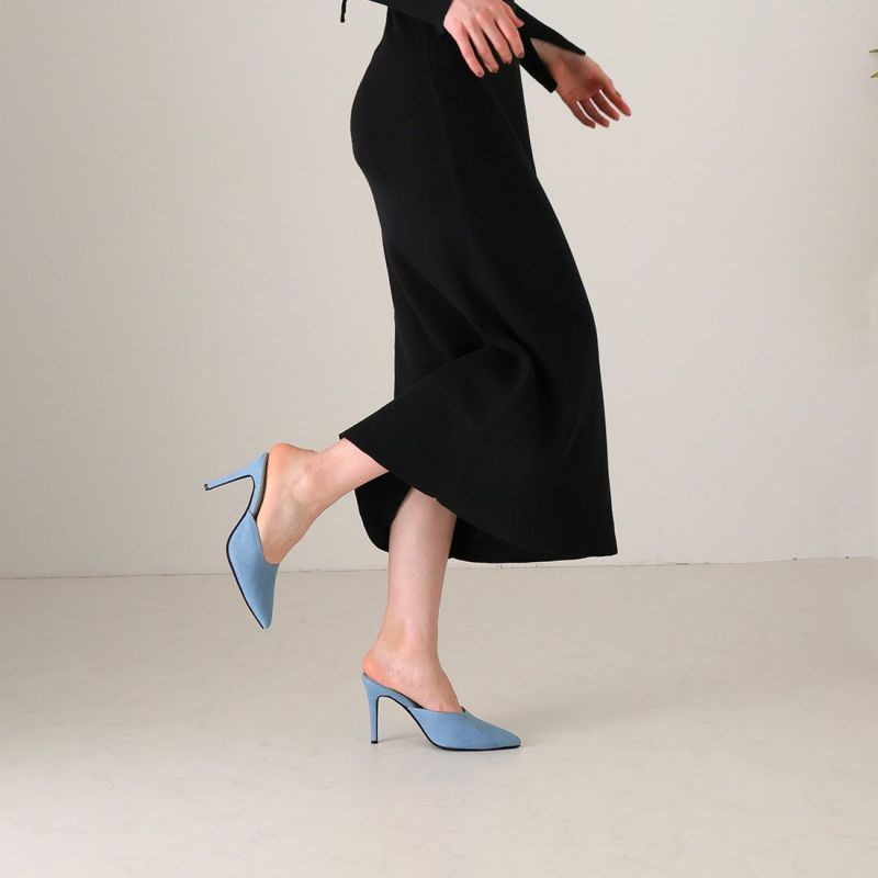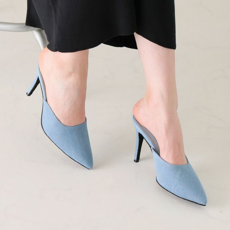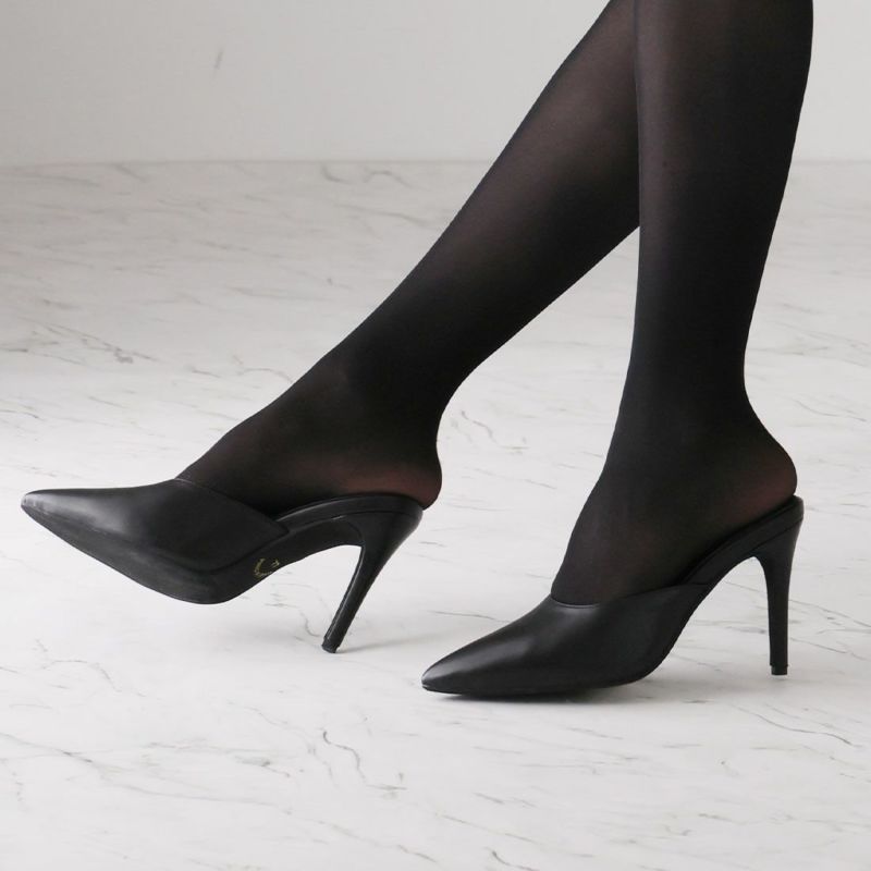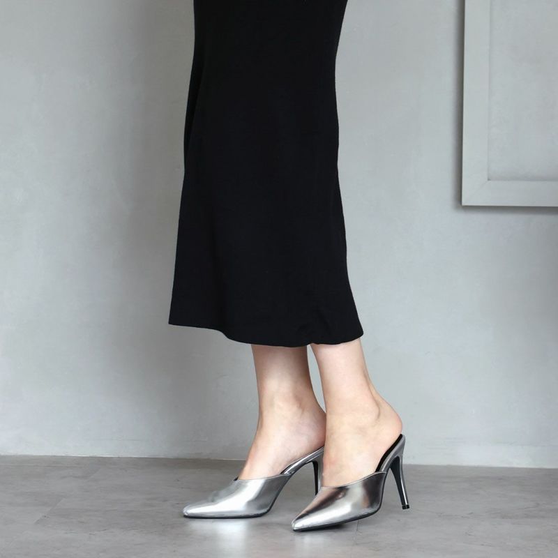 大人エッジィな美しいラインのポインテッドトゥのピンヒールミュールは、洗練されたシャープでレディな佇まいを醸す1足。