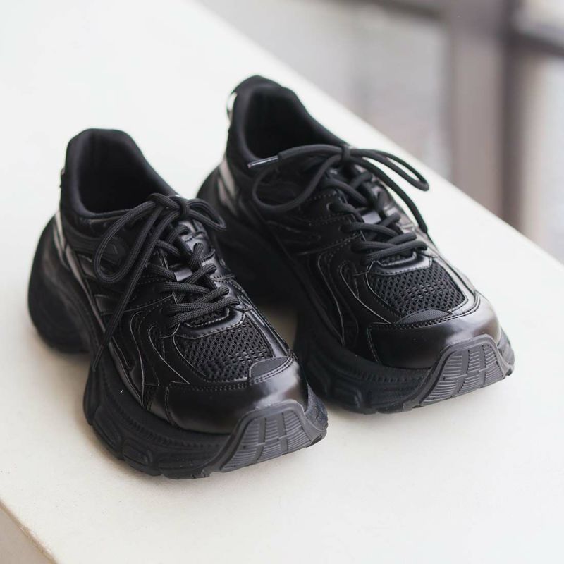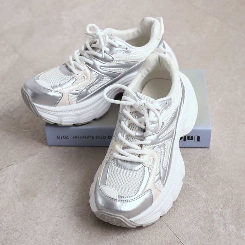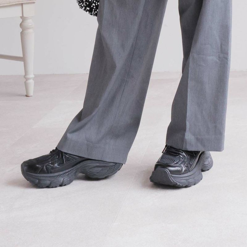 ・異素材コンビがアクセントのレースアップダッドスニーカー!