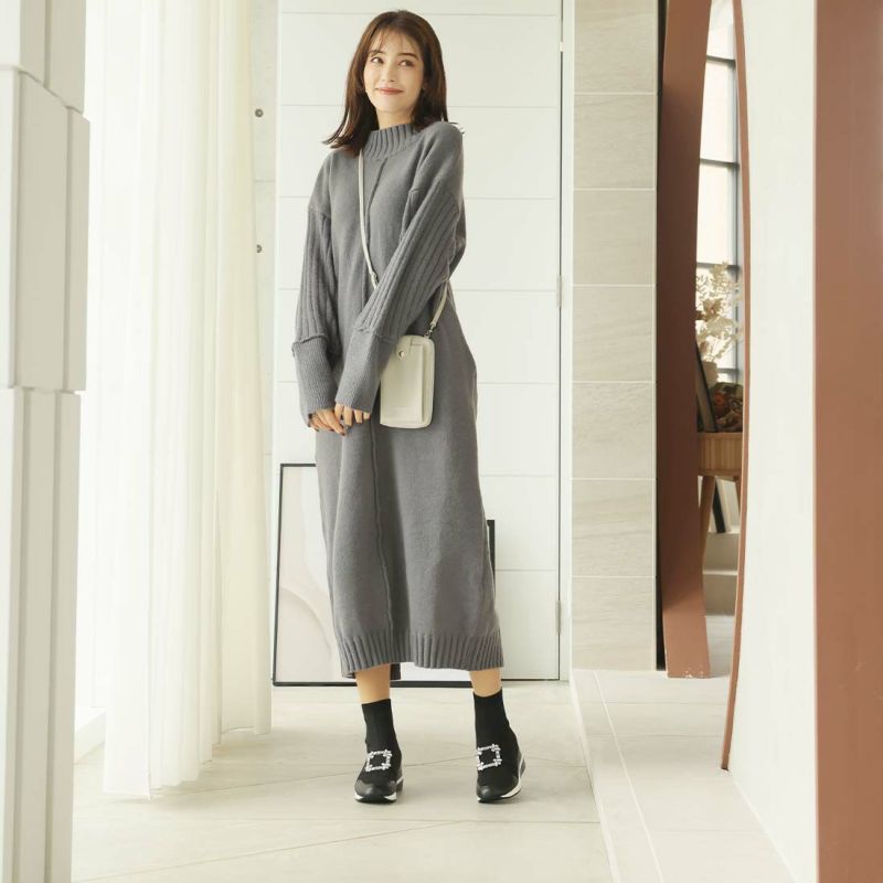 ・今っぽい重ためのディテール×ニット素材でスタイルアップが叶う
