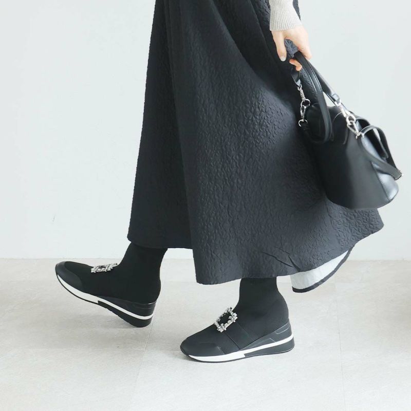 ・高級感のあるビジューバックルは、いつものコーデに合わせるだけでエレガントさをプラス。