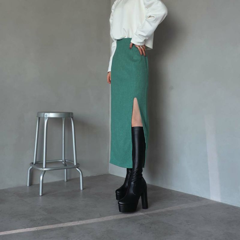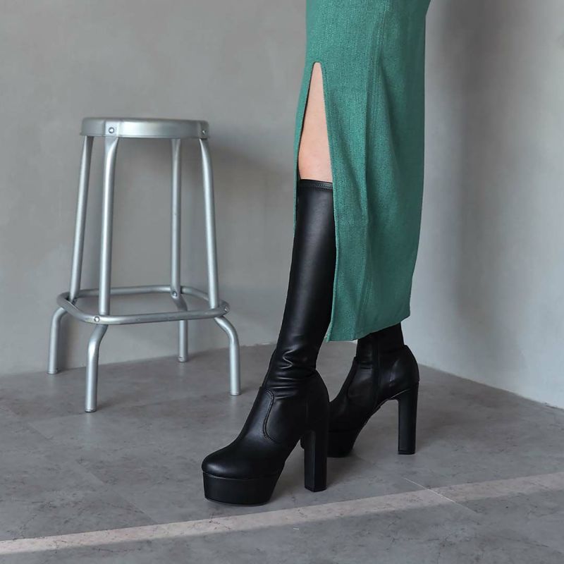 ・厚底プラットフォームデザインで足元も盛れるロングブーツ!