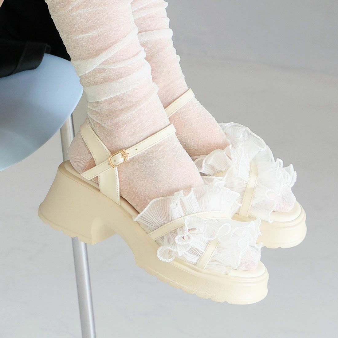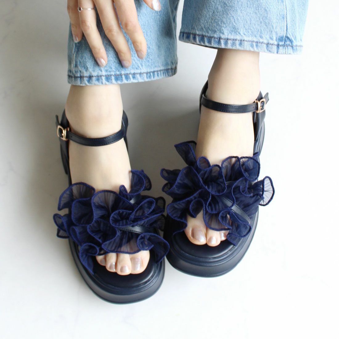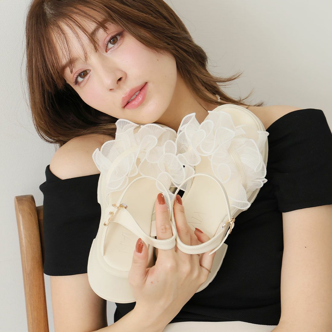 他の画像を見る VIVIAN 【2025新色追加】シアークロスフリル厚底ストラップサンダル 即納 定価 ¥ 3,980 → 10%OFF ¥ 3,580 税込 SOLD OUT カートに入れる お気に入りに登録する