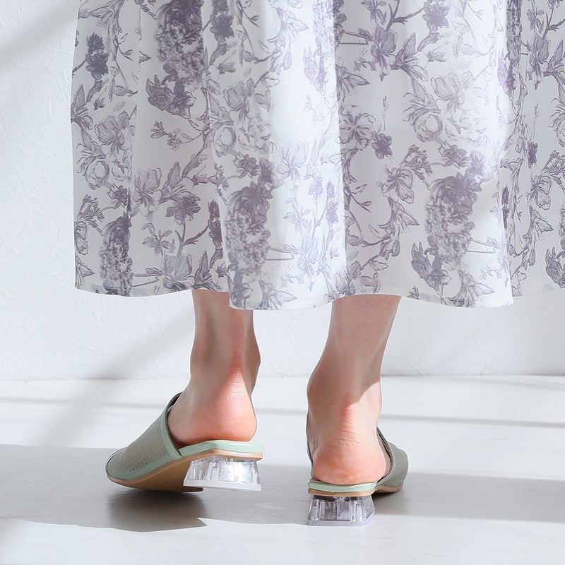 夏の日差しに映えるバックシャンなクリアヒールで上品な大人っぽい足元を演出。