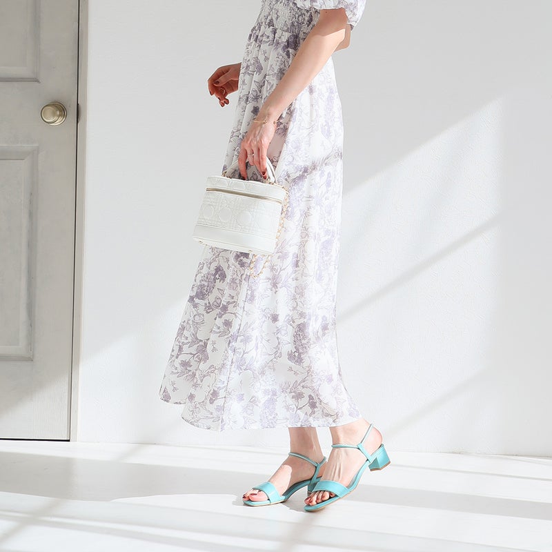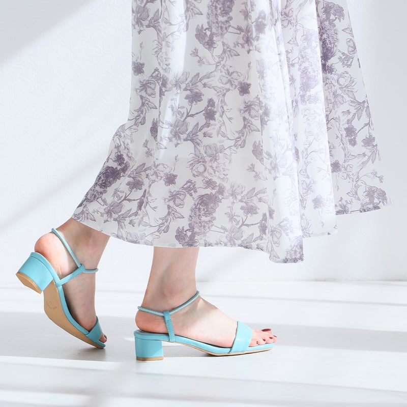 ・スクエアトゥ×太ヒールで甘くなりすぎない上品フォルム。