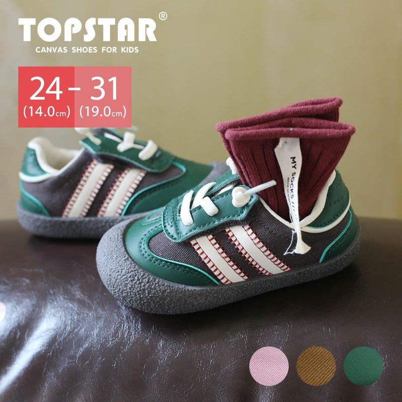 VIVIAN TOPSTARサイドラインゴム紐U型マジックテープキッズスニーカー