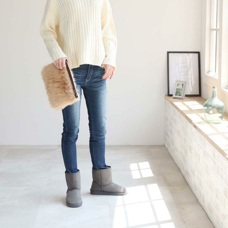 ・つま先まで敷き詰められた、あったかふわふわのファーが気持ちいいフェイクムートンブーツ。