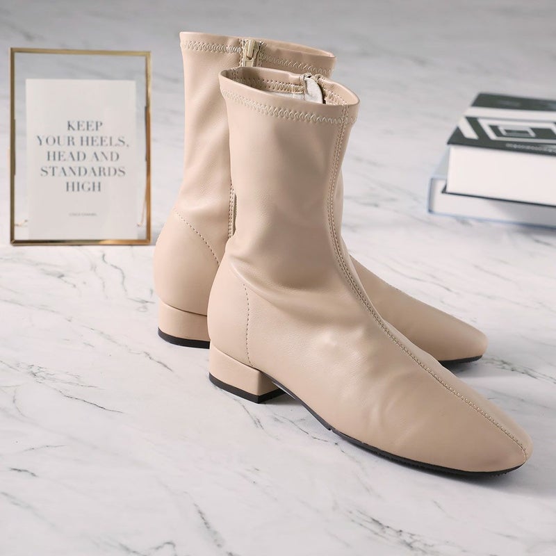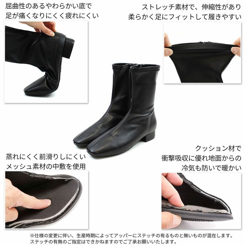 ・裏地が付いていないストレッチ素材で、伸縮性があり柔らかく足にフィットして履きやすい。