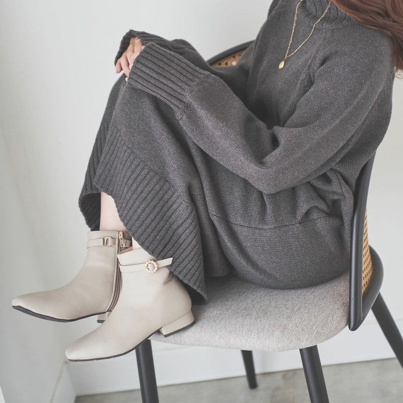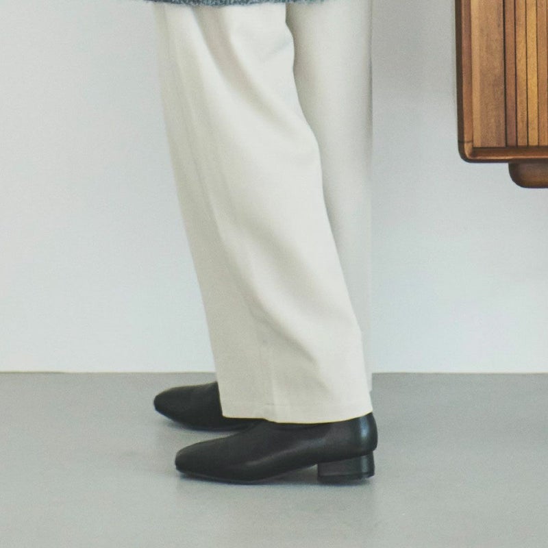 ・スクエアトゥ×フレアヒールで甘くなりすぎないスッキリとしたシルエット