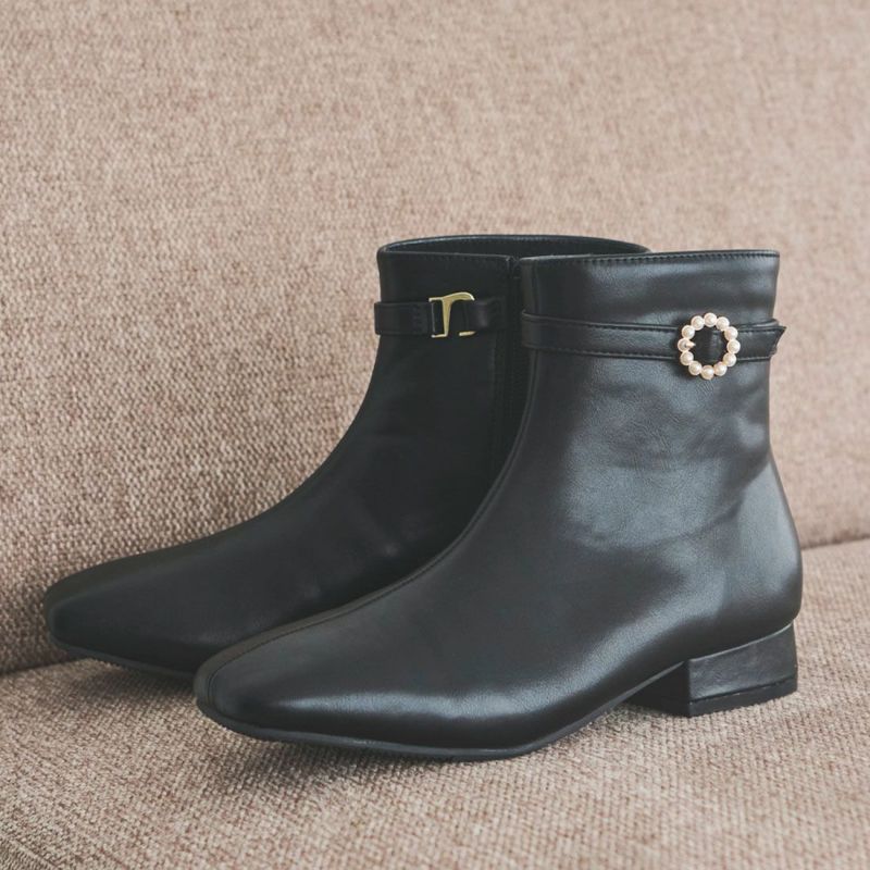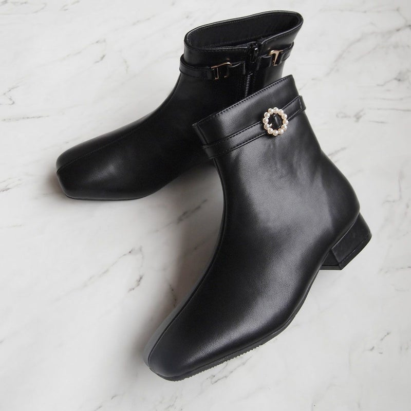 ・上品なパールリングバックルでエレガントな足元を演出