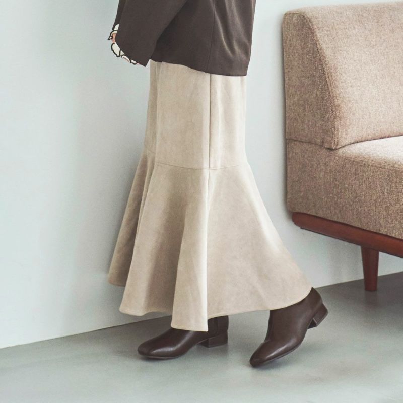 ・スクエアトゥ×フレアヒールで甘くなりすぎないスッキリとしたシルエット