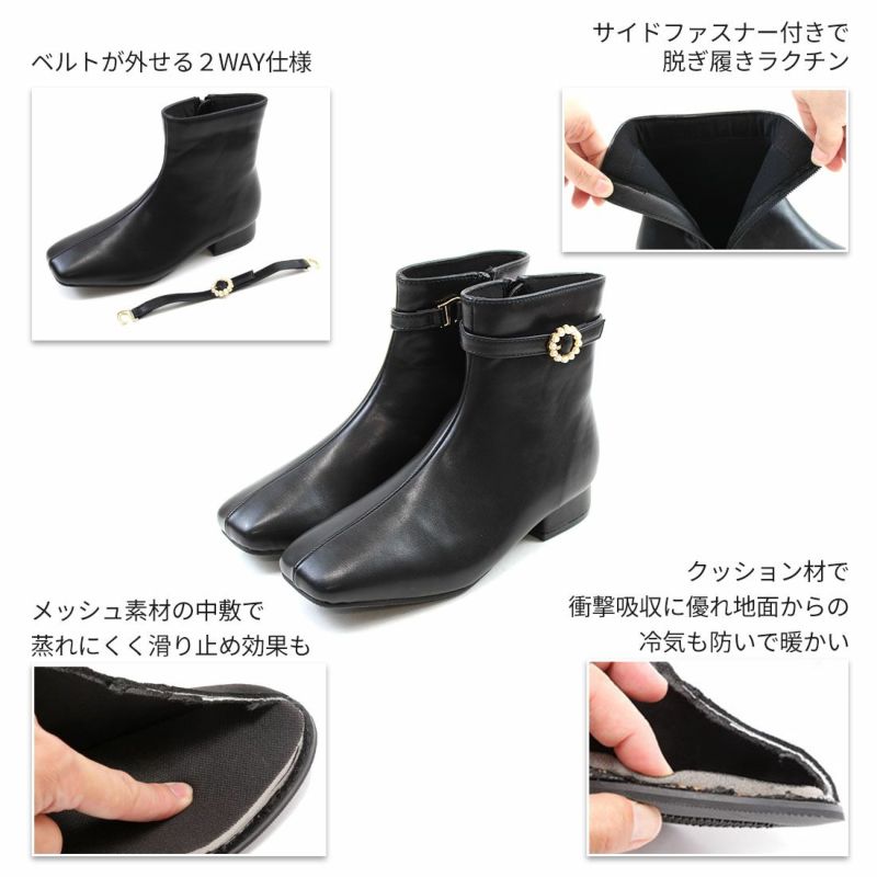 ・取り外し可能なベルトデザインでシンプルなショートブーツとしても履ける2WAY仕様