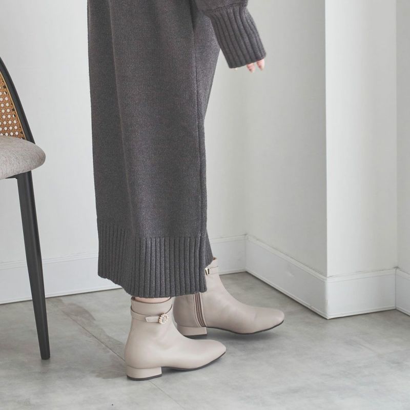 ・上品なパールリングバックルでエレガントな足元を演出