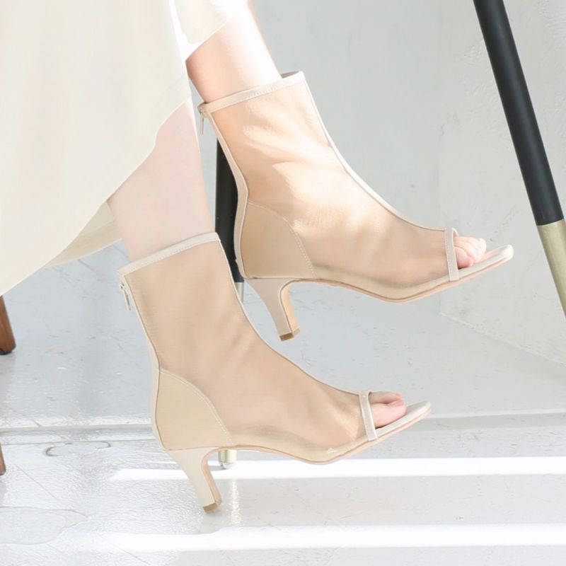 ・チュールやメッシュ素材で透け感のあるシアーブーツ!