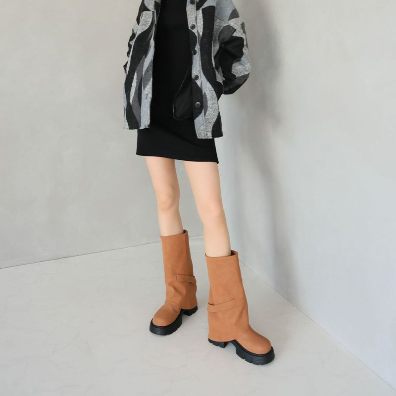 ・だぼっと感がカワイイ!計算された「ゆるシルエット」で足元に抜け感プラスする個性派ゴツめ厚底カバーブーツ!