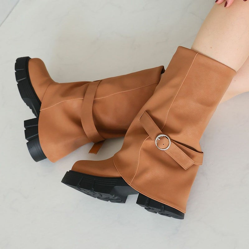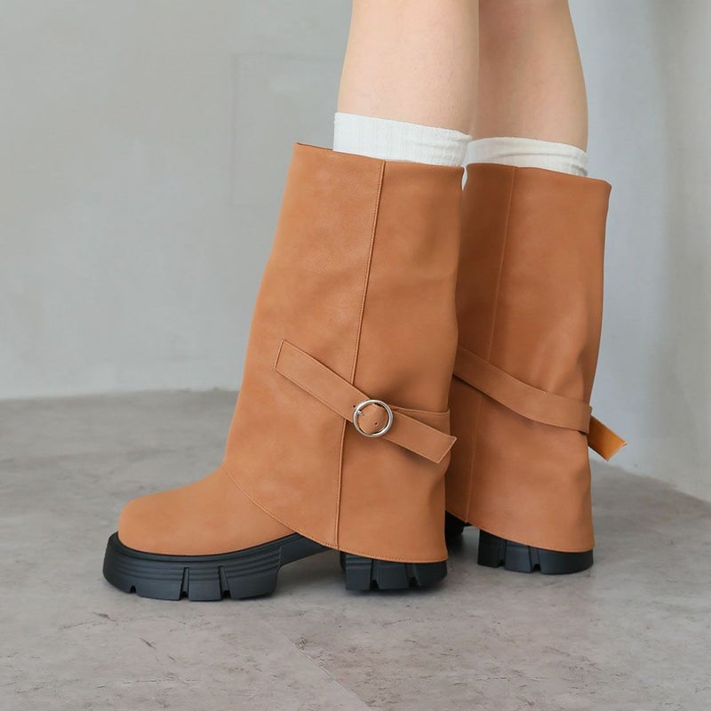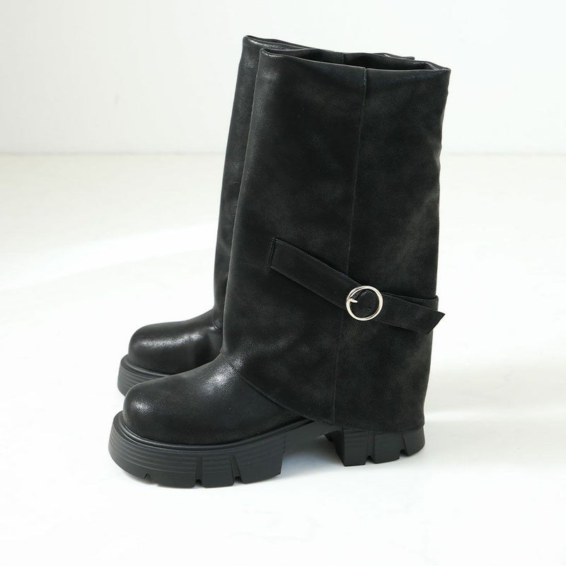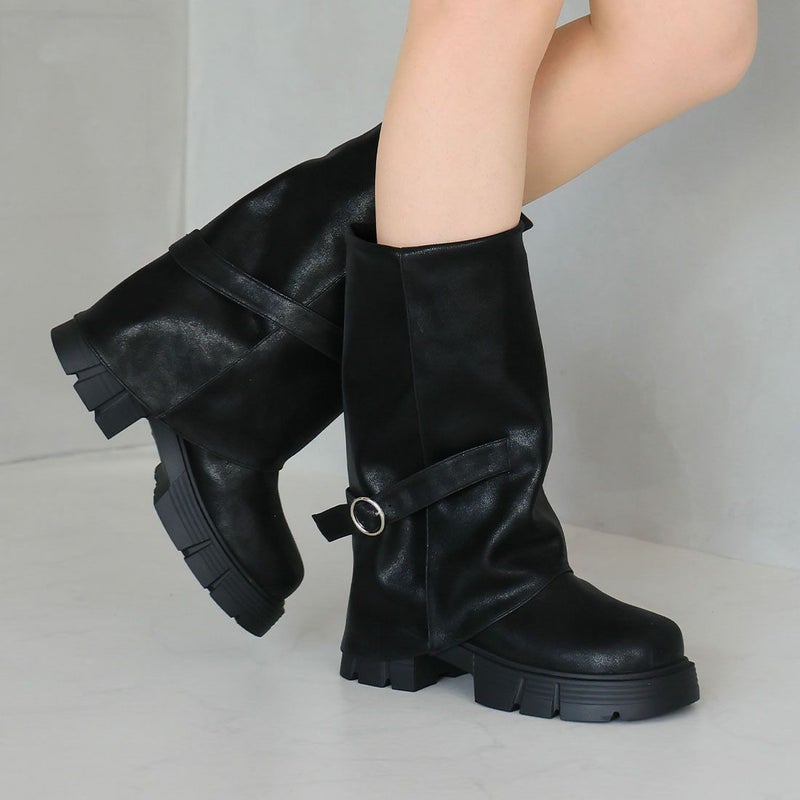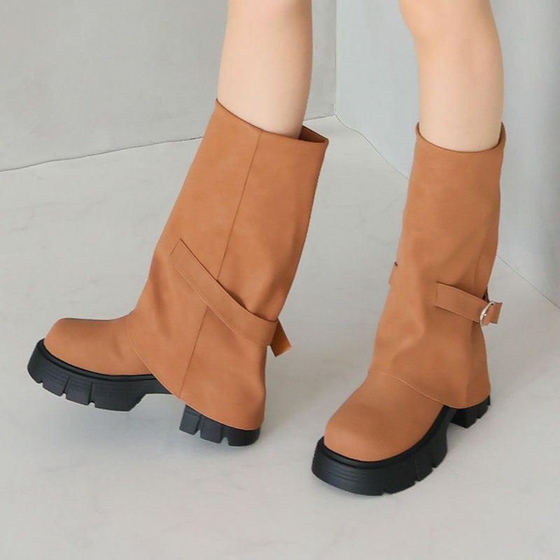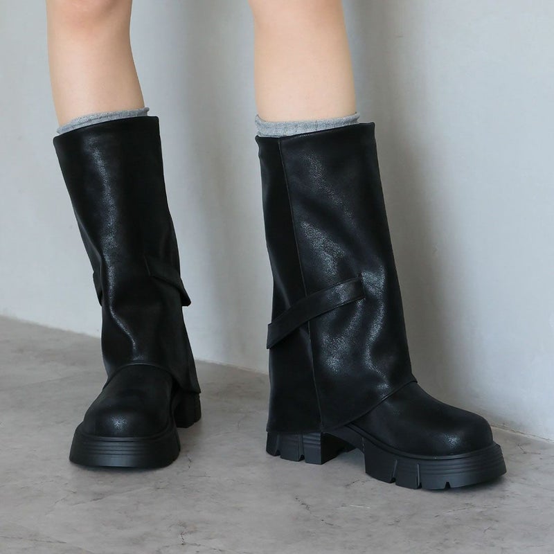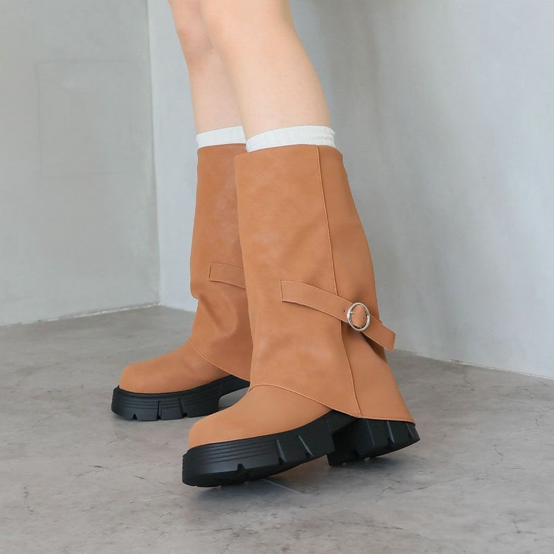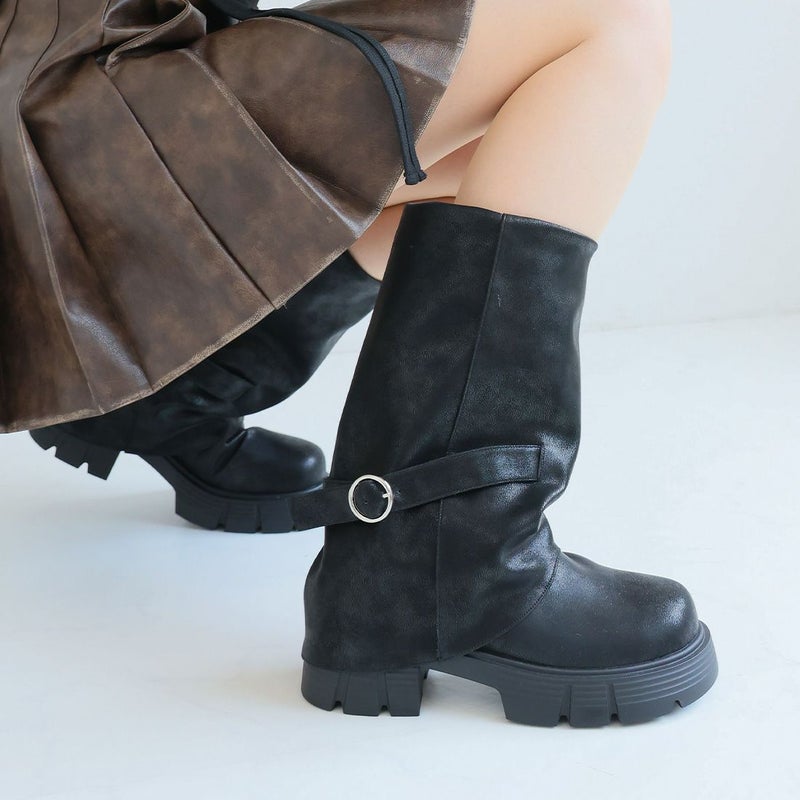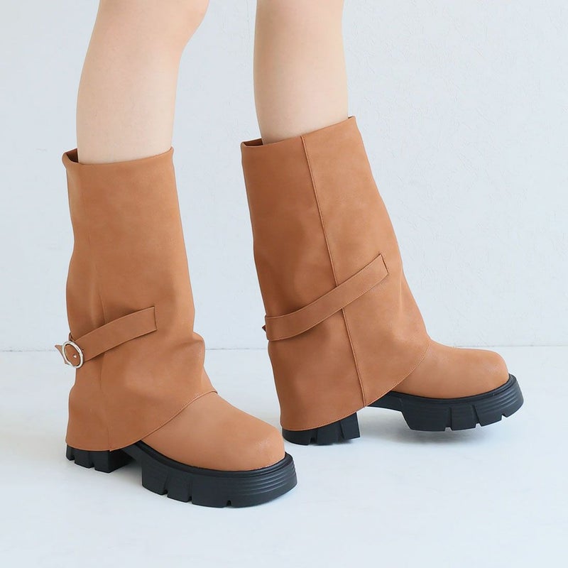 ・だぼっと感がカワイイ!計算された「ゆるシルエット」で足元に抜け感プラスする個性派ゴツめ厚底カバーブーツ!