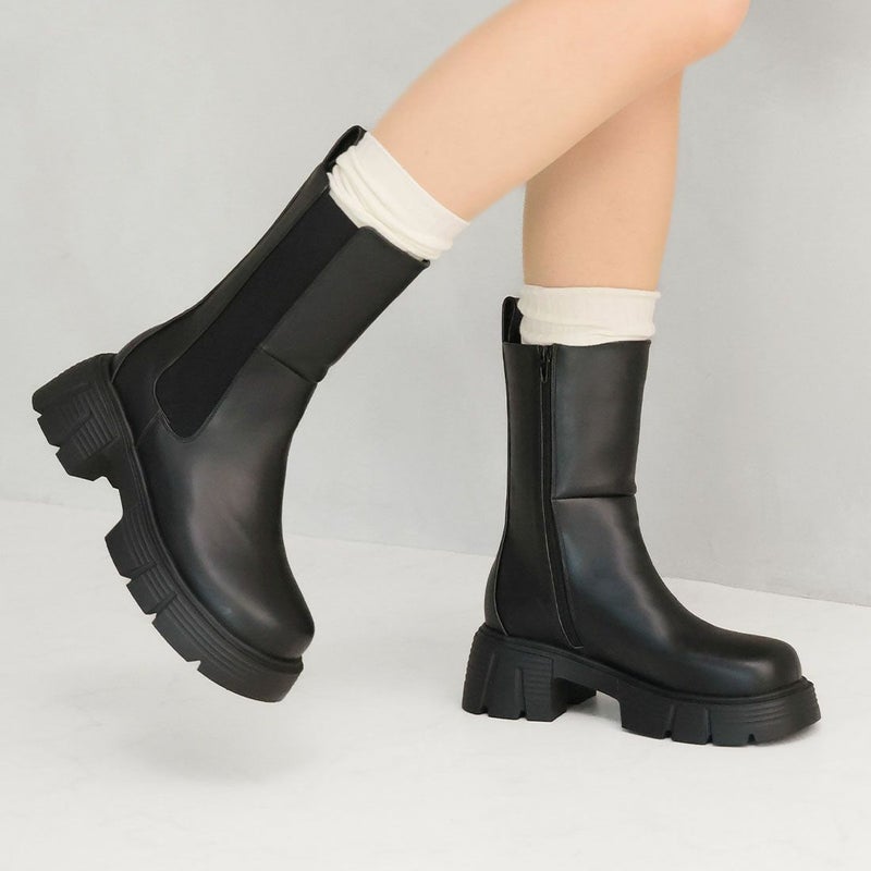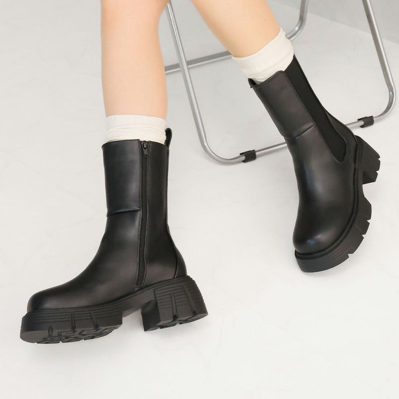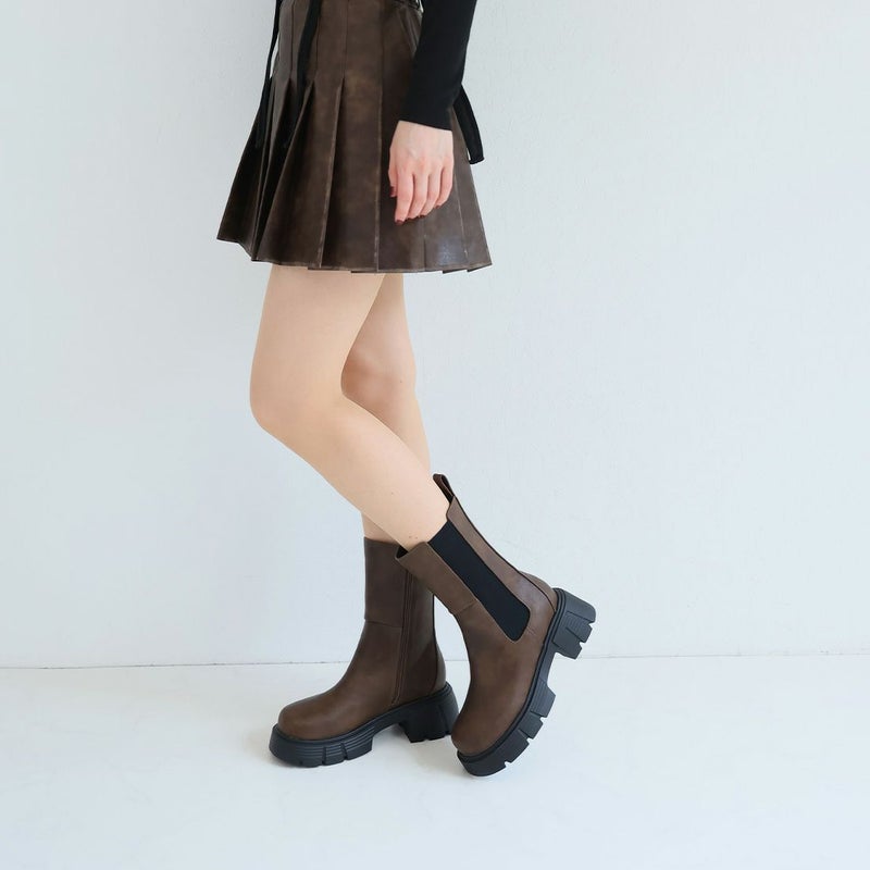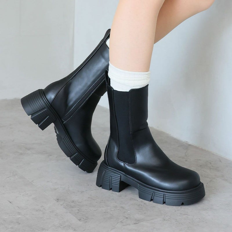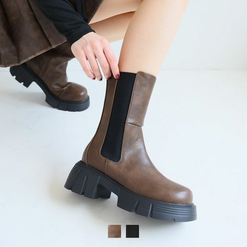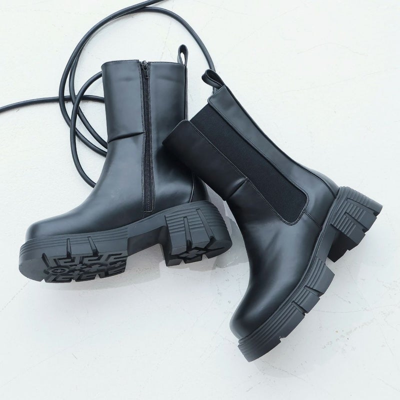 ・圧倒的な存在感を放つ重ためのディテールが今っぽい!ゴツめサイドゴアミドルブーツ!