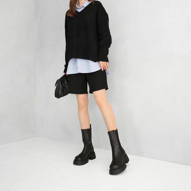 ・メンズライクなチェルシーブーツは、絶妙な丈感でスカートにもパンツにもバランス良く合わせやすく大人っぽいコーデに仕上がる。