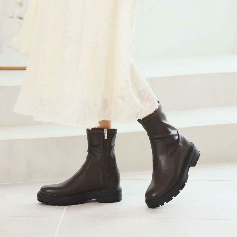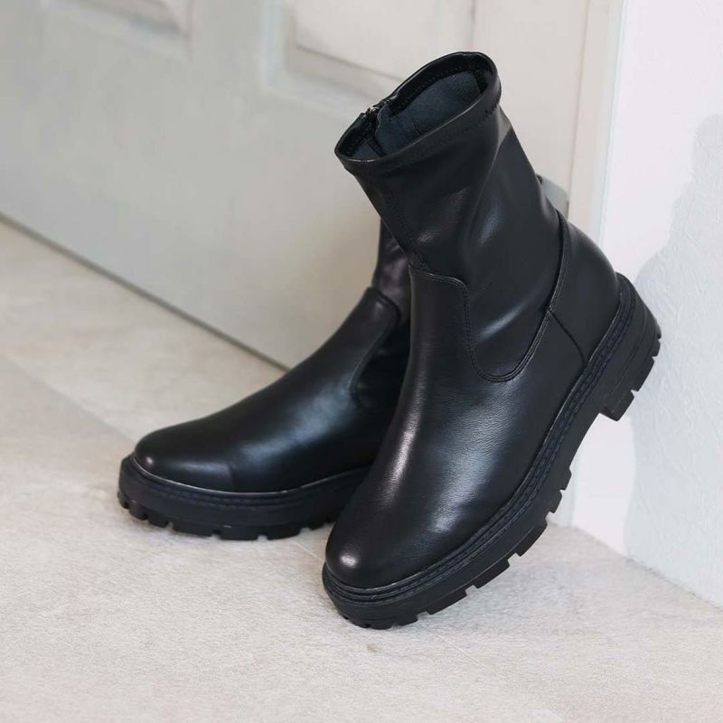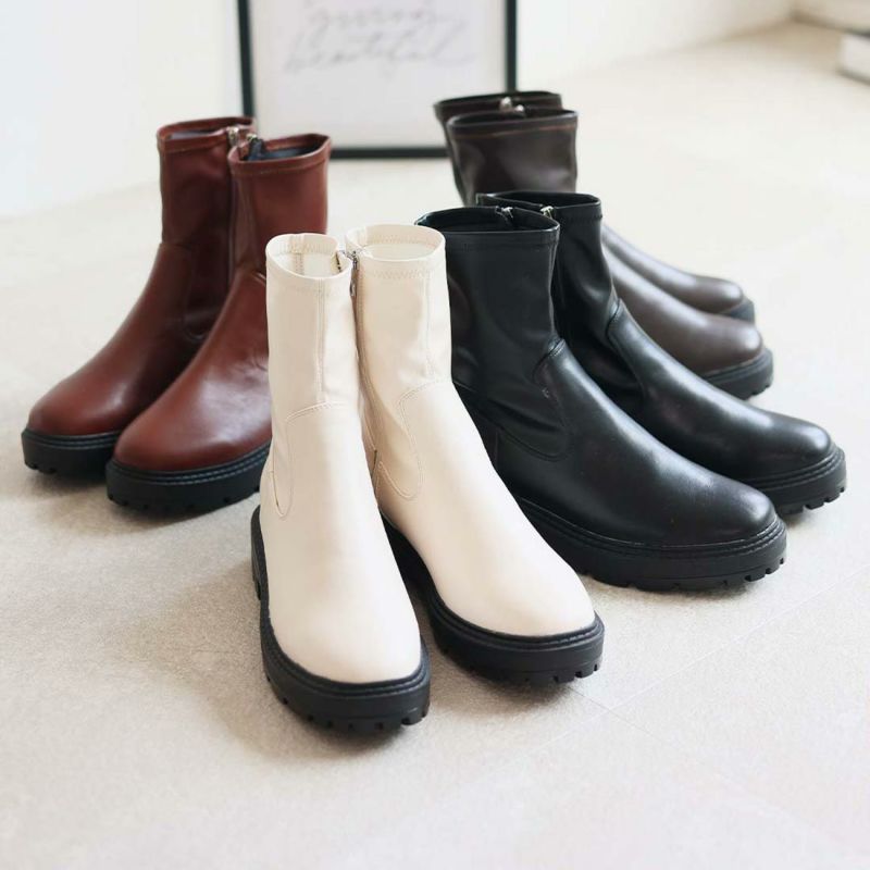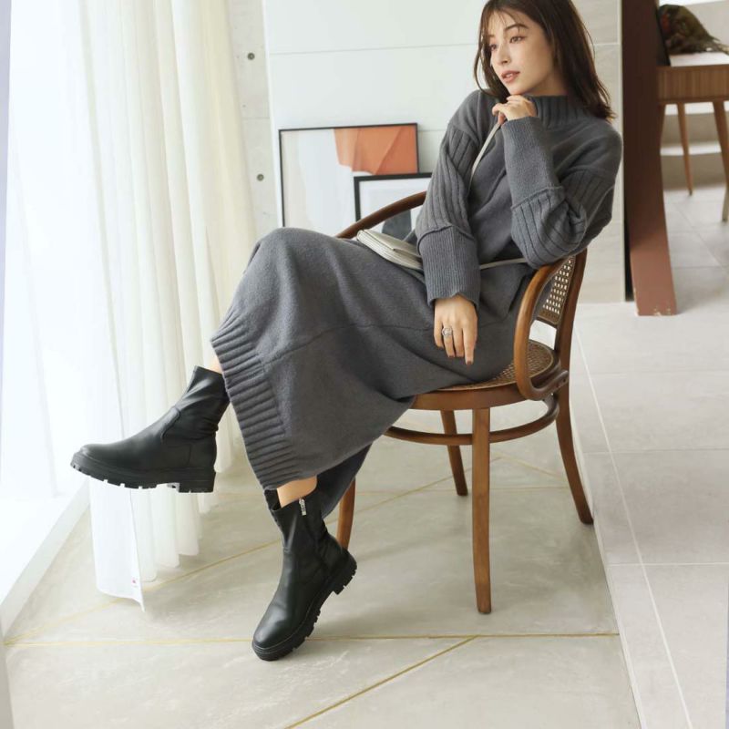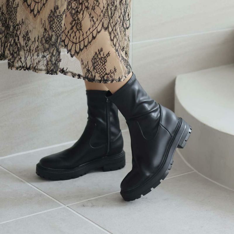 ・ゴツめデザインで足元にボリュームを持たせ、伸縮性のあるストレッチ素材が足にフィットし引き締まって見えるので、スタイルアップが期待できるアイテム。
