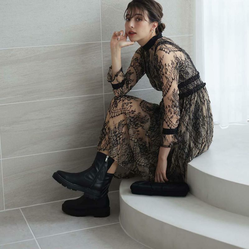 ガーリーやフェミニンスタイルにあえてゴツめの厚底デザインで外すことでコーデをピリッと引き締しめる甘辛ミックスコーデにもオススメ。