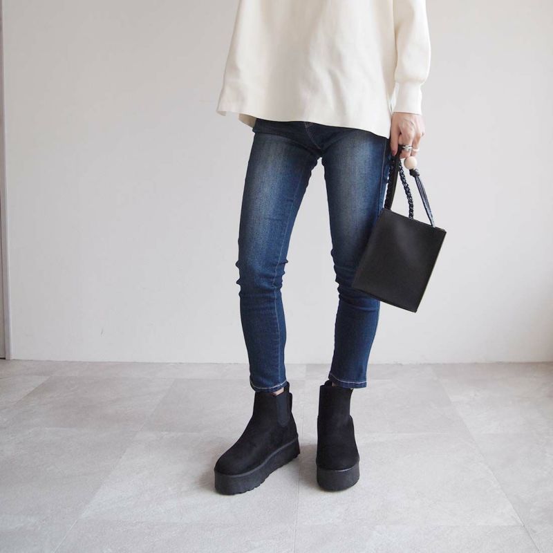 ・メンズライクなサイドゴアブーツは、絶妙な丈感でスカートにもパンツにもバランス良く合わせやすい。