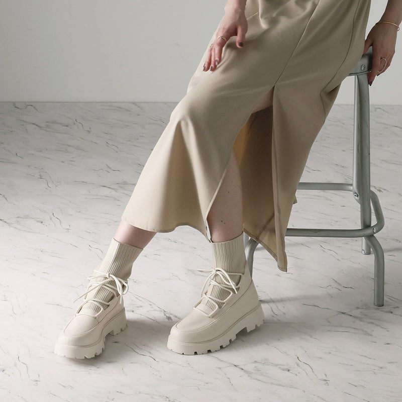 ・ボリュームのあるトラックソール×ニット素材でスタイルアップ!