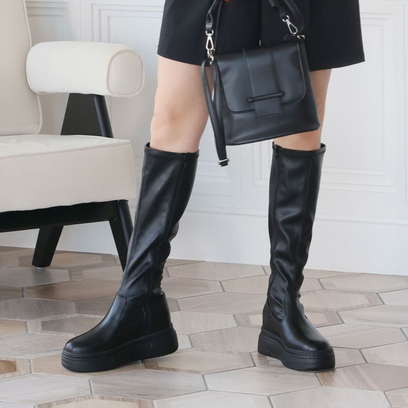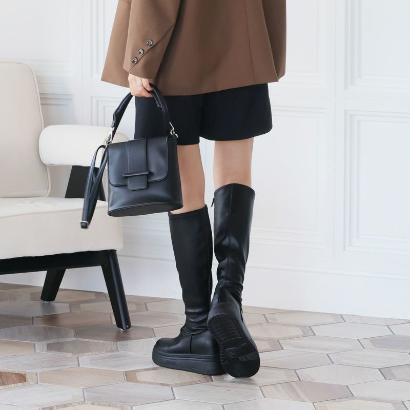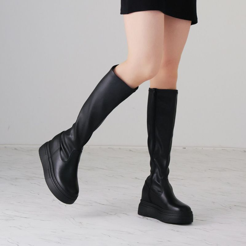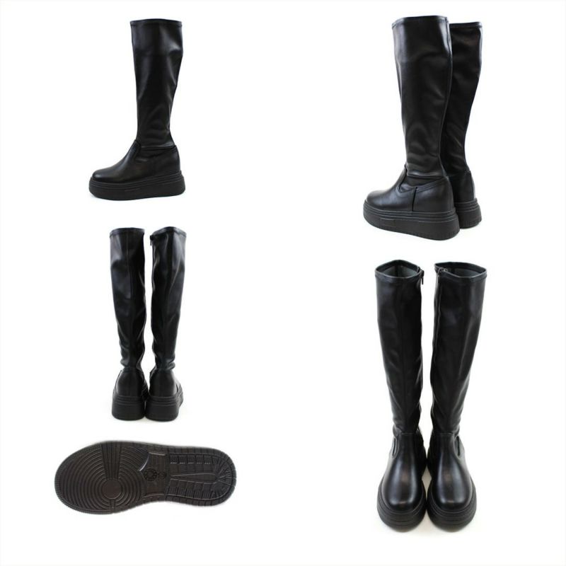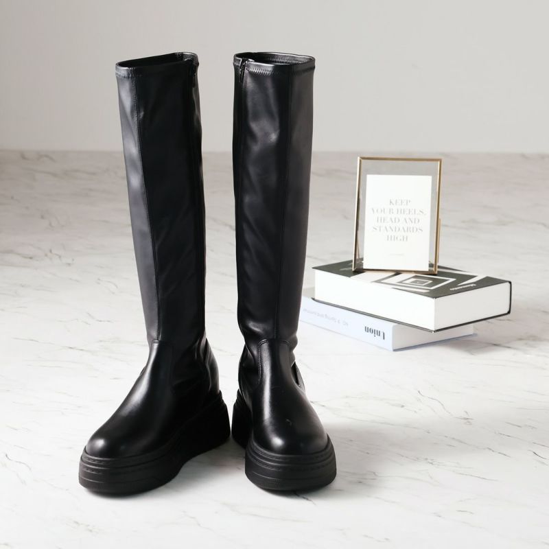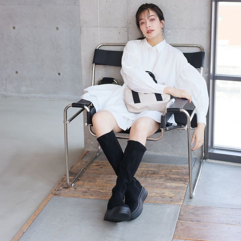 ・ゴツめデザインで足元にボリュームを持たせ、伸縮性のあるストレッチ素材が足にフィットし引き締まって見えるので、スタイルアップが期待できるアイテム。