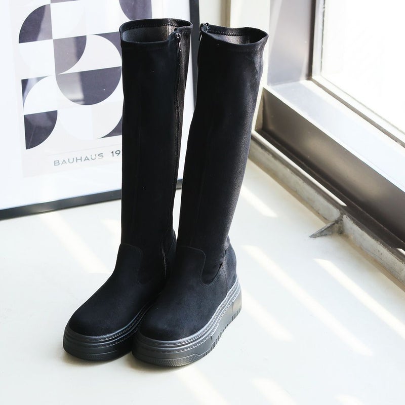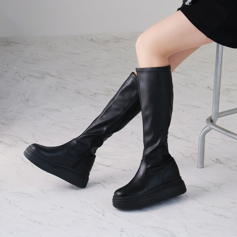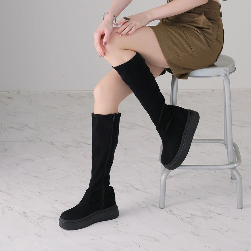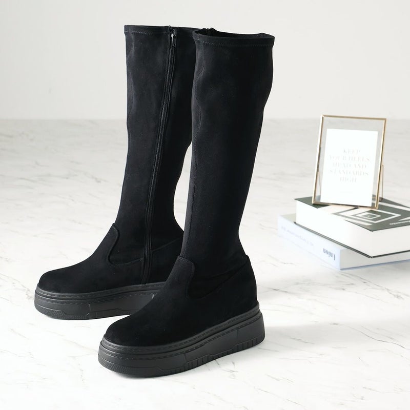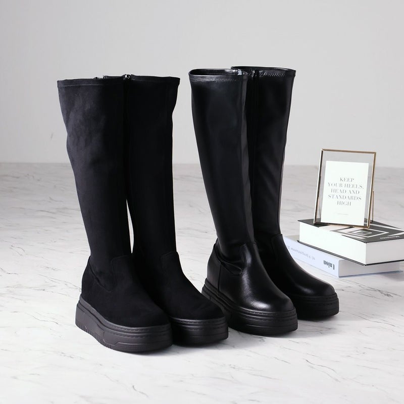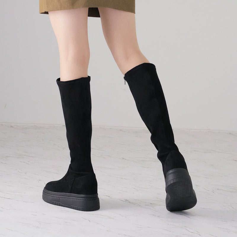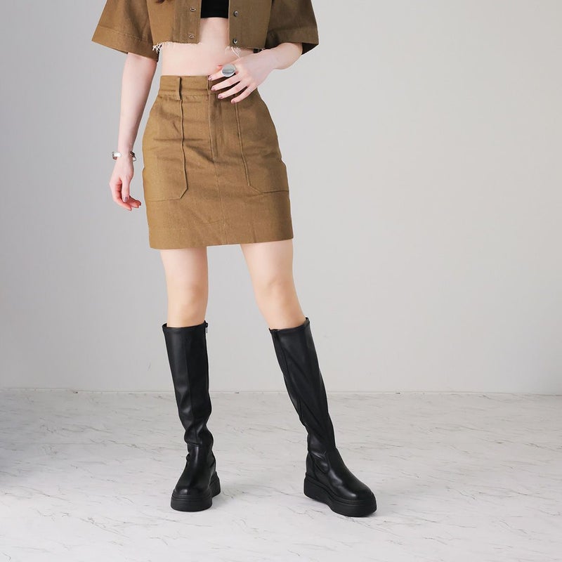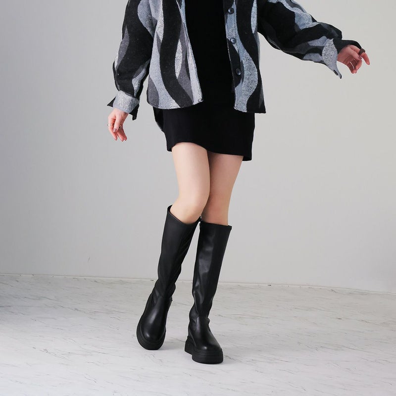 ・ゴツめデザインで足元にボリュームを持たせ、伸縮性のあるストレッチ素材が足にフィットし引き締まって見えるので、スタイルアップが期待できるアイテム。