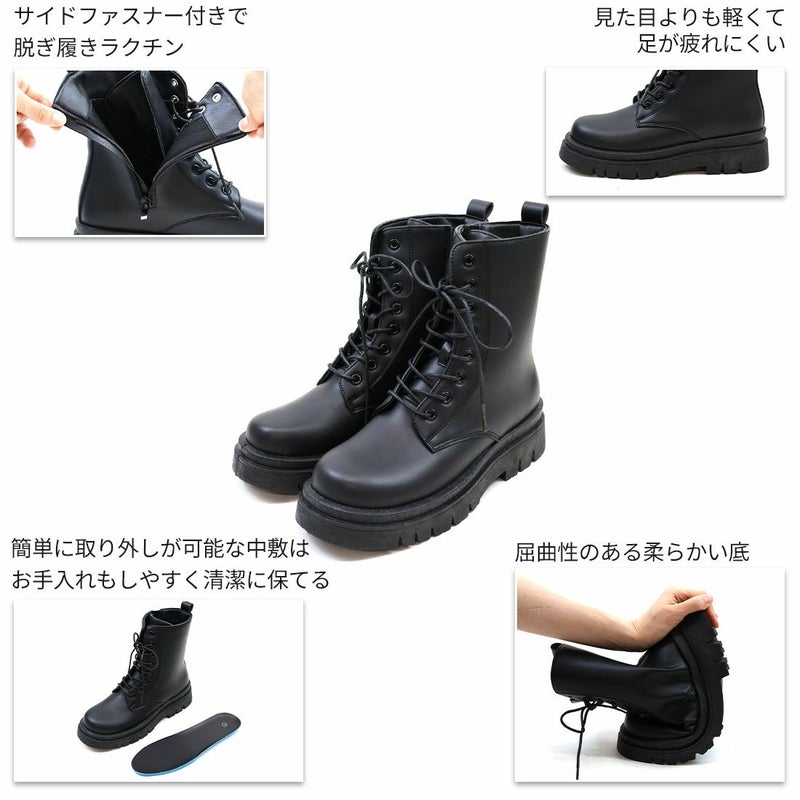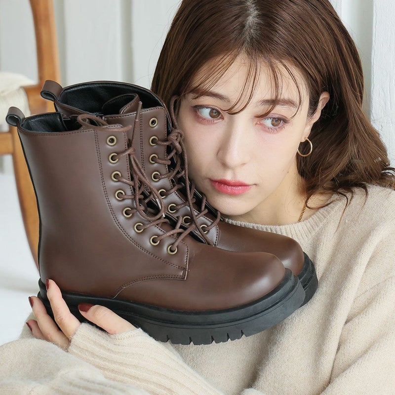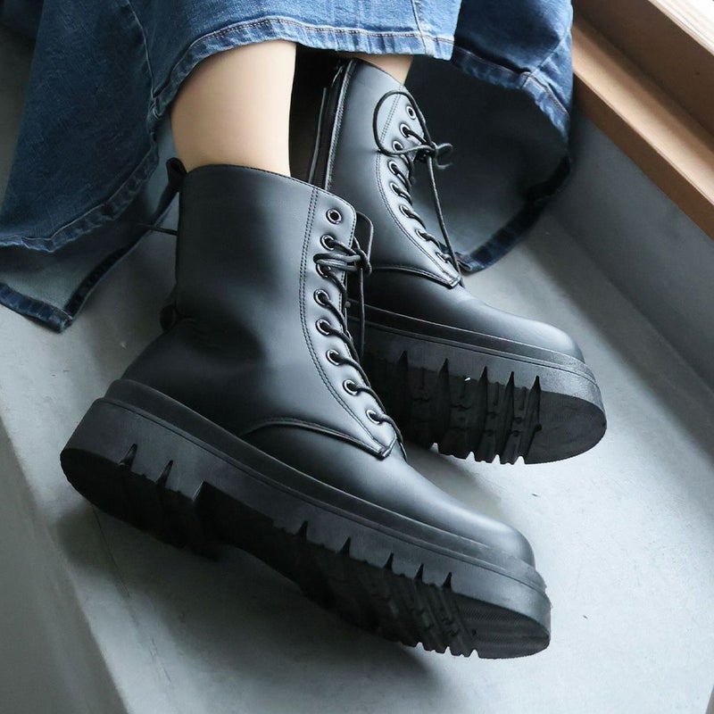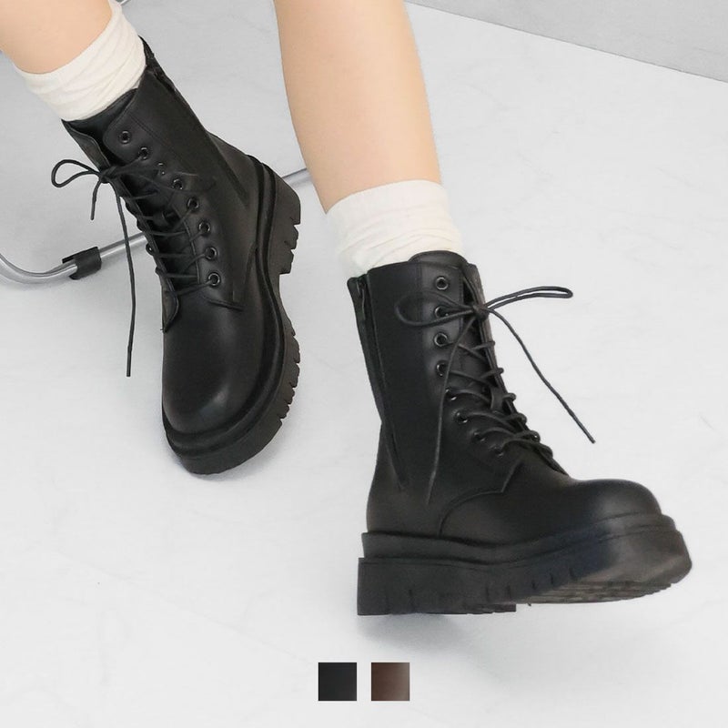 VIVIAN 【晴雨兼用】厚底レースアップワークブーツ