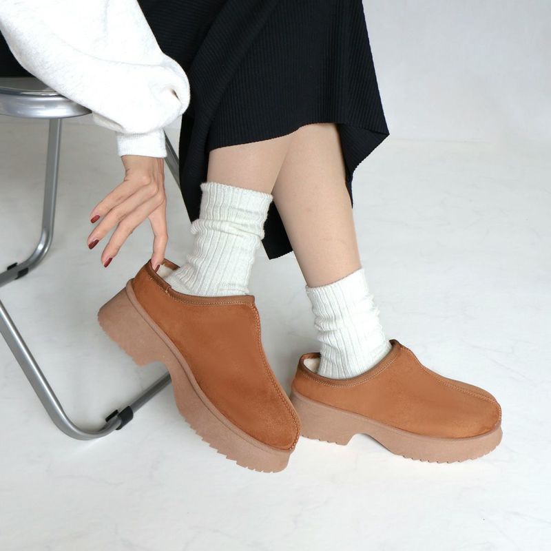 ・厚底チャンキーヒールで今っぽシルエットのムートンスリッパ!