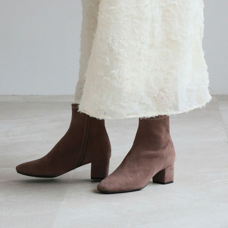 VIVIAN 【2025年新色追加】5cmヒール/スクエアトゥストレッチショートブーツ