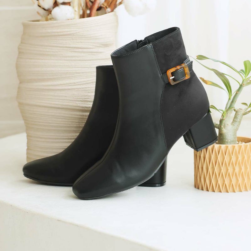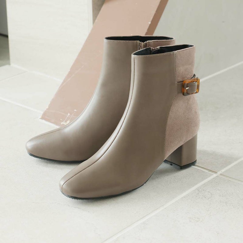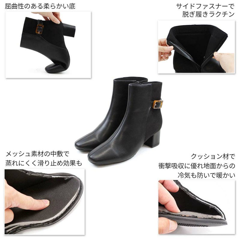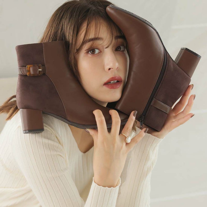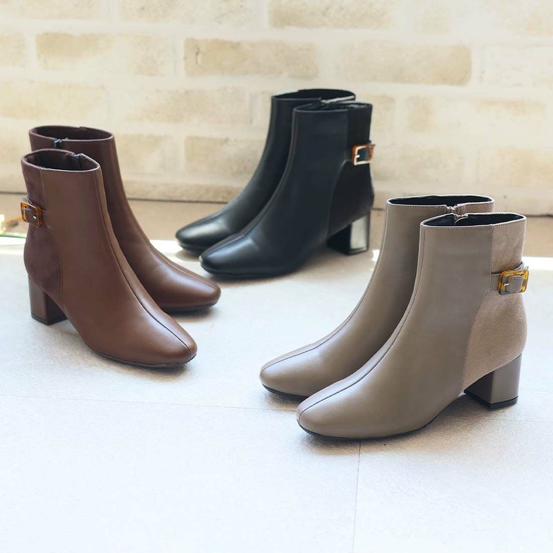 ・定番デザインもべっ甲調バックル付きベルトの異素材コンビでトラッド感漂うショートブーツに