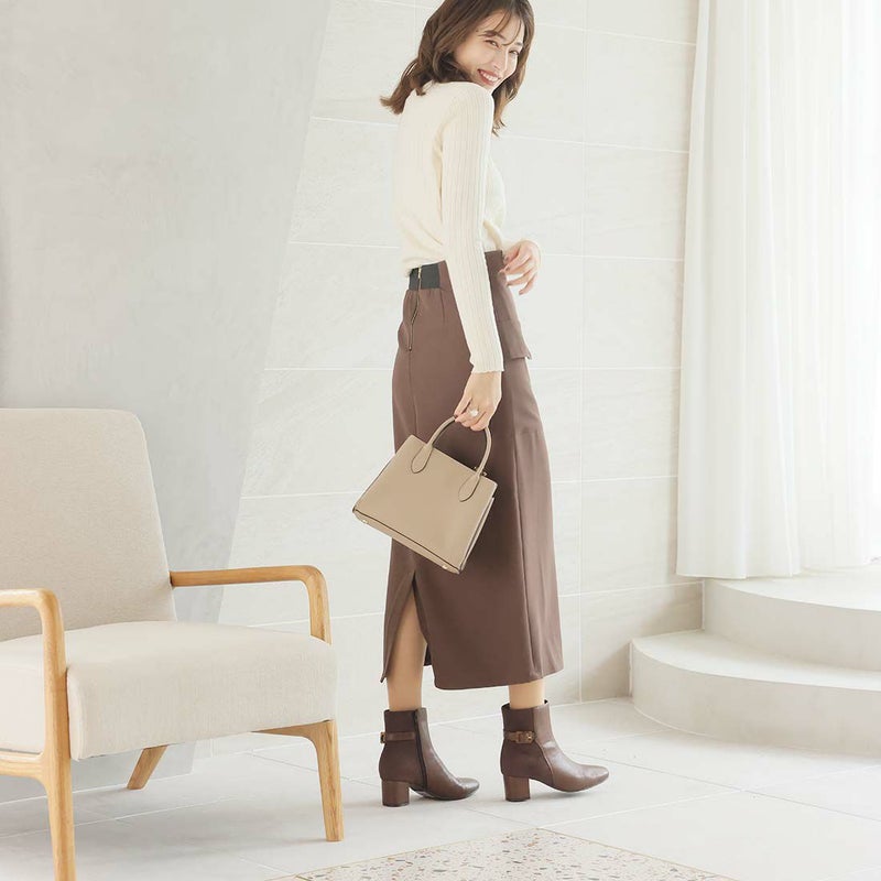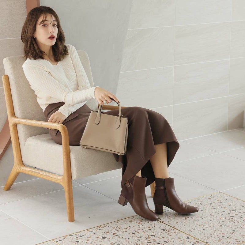 ・丸みのあるスクエアトゥ×ブロックヒールで甘くなりすぎないスッキリとしたシルエット