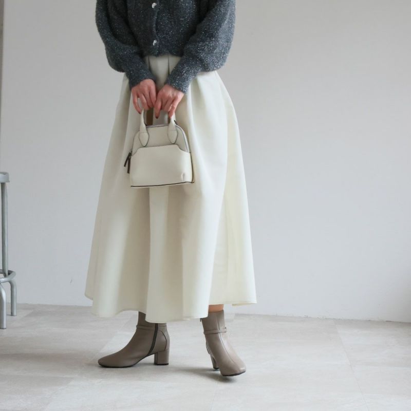 ・丸みのあるスクエアトゥ×ブロックヒールで甘くなりすぎないスッキリとしたシルエット
