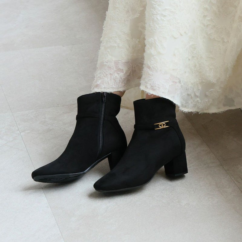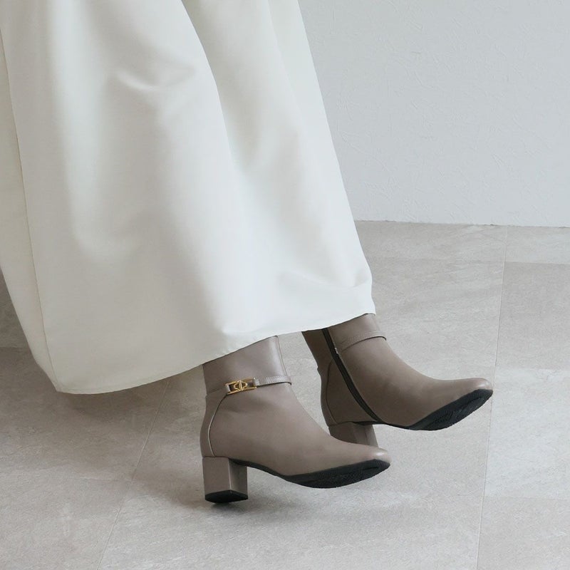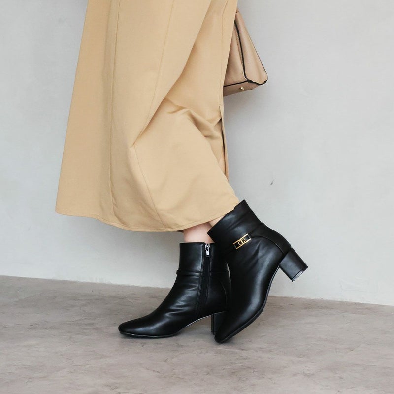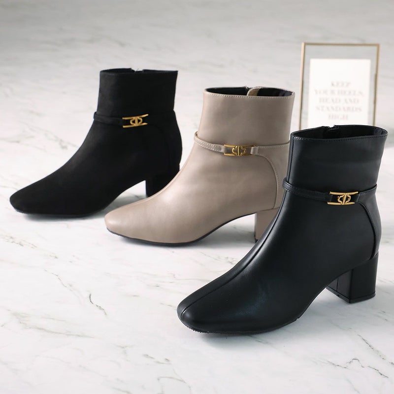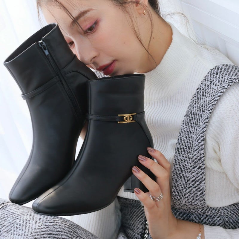 ・定番デザインもゴールドパーツ付きベルトでトラッド感漂うショートブーツに