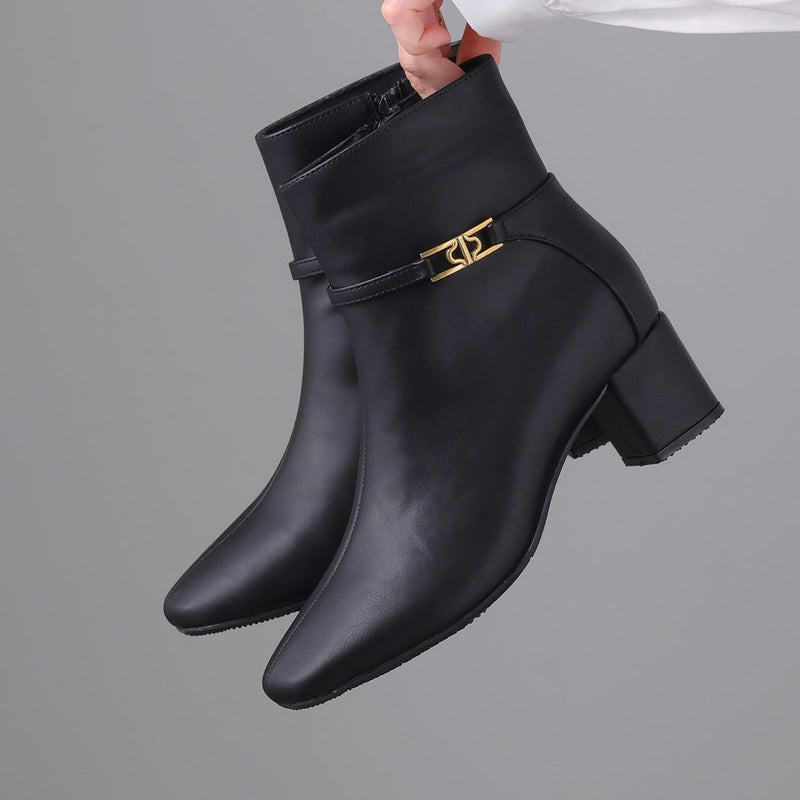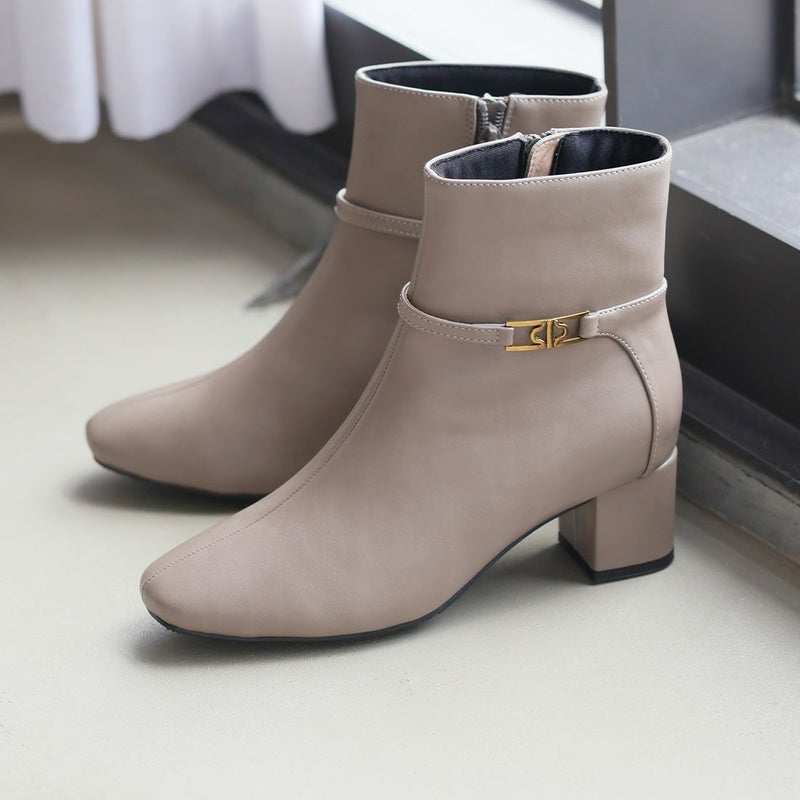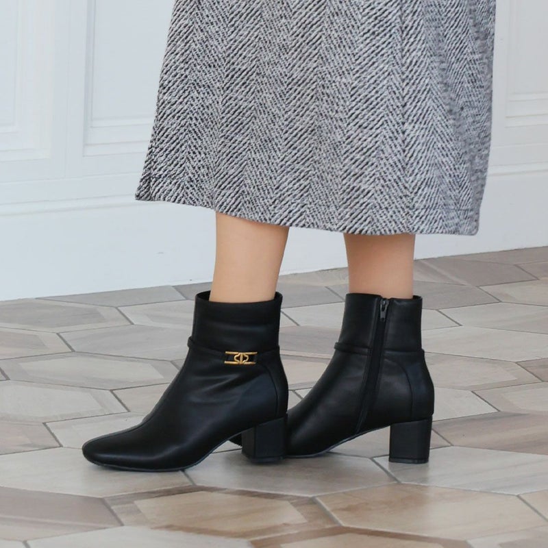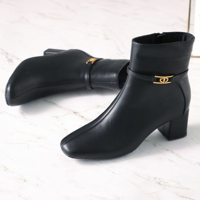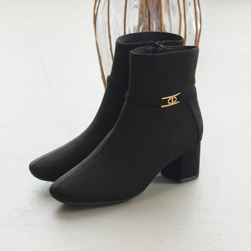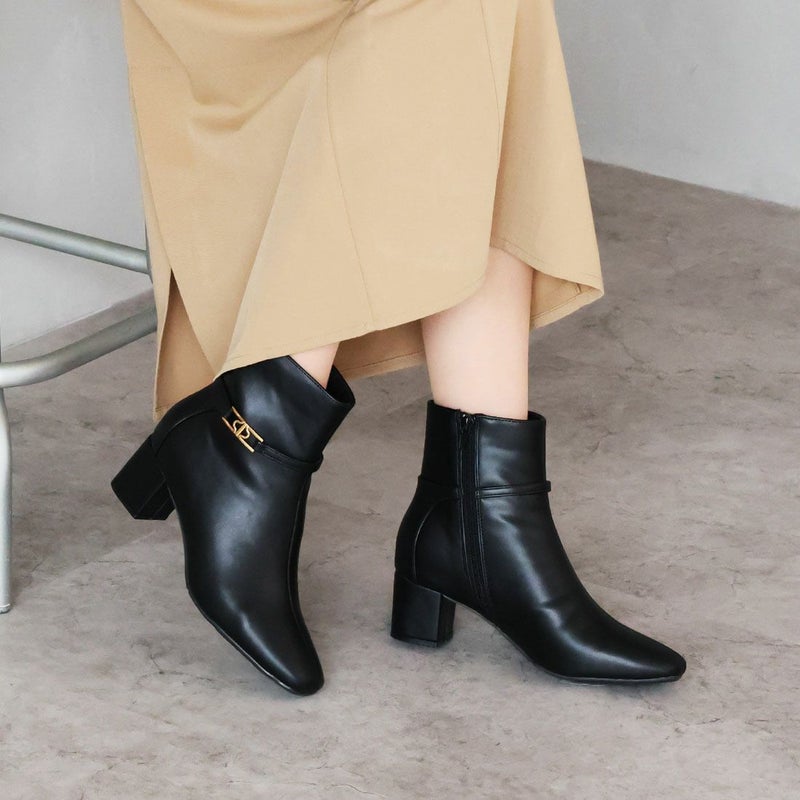 ・定番デザインもゴールドパーツ付きベルトでトラッド感漂うショートブーツに